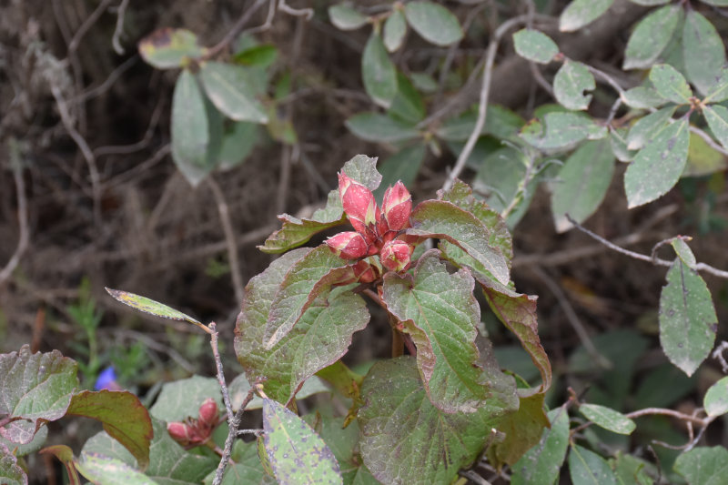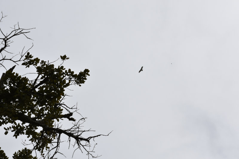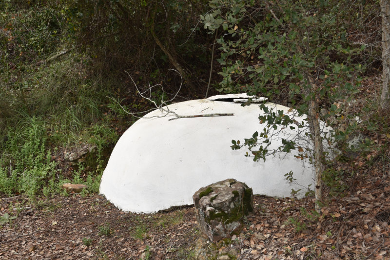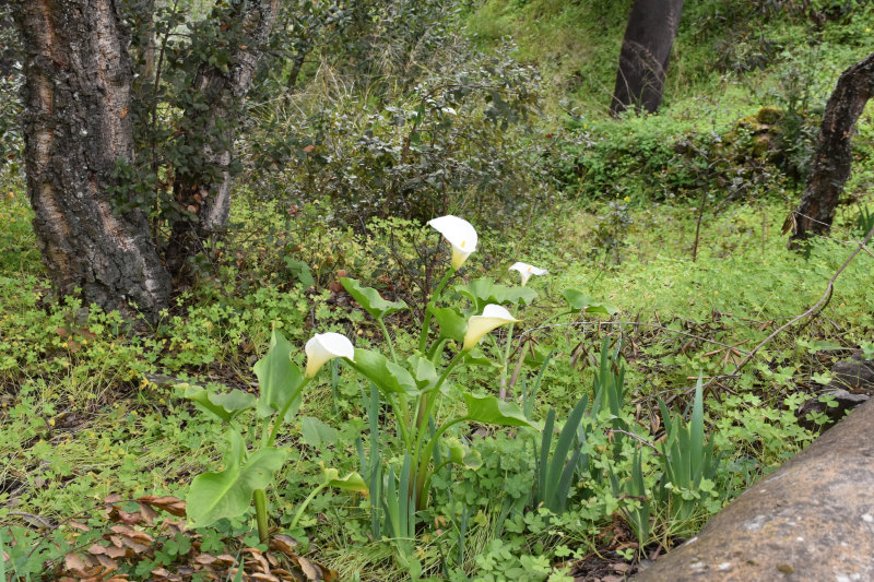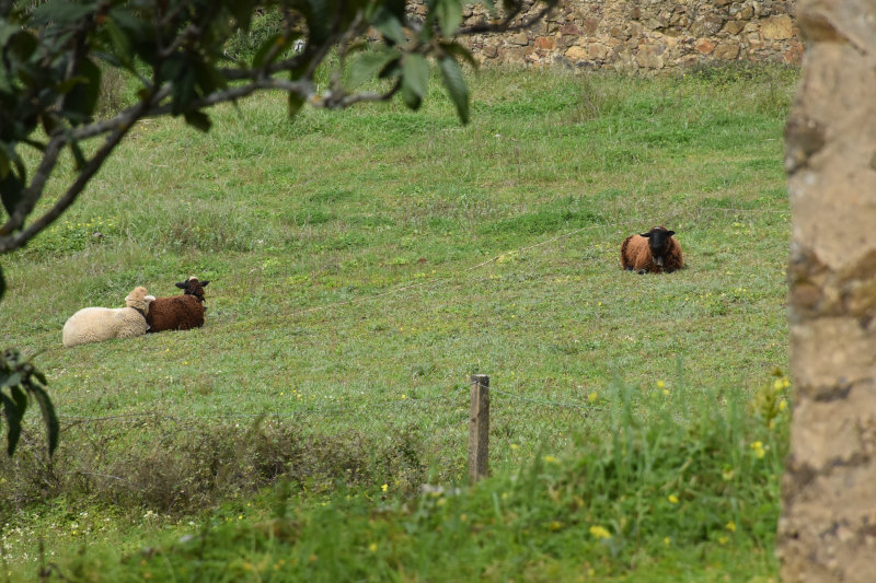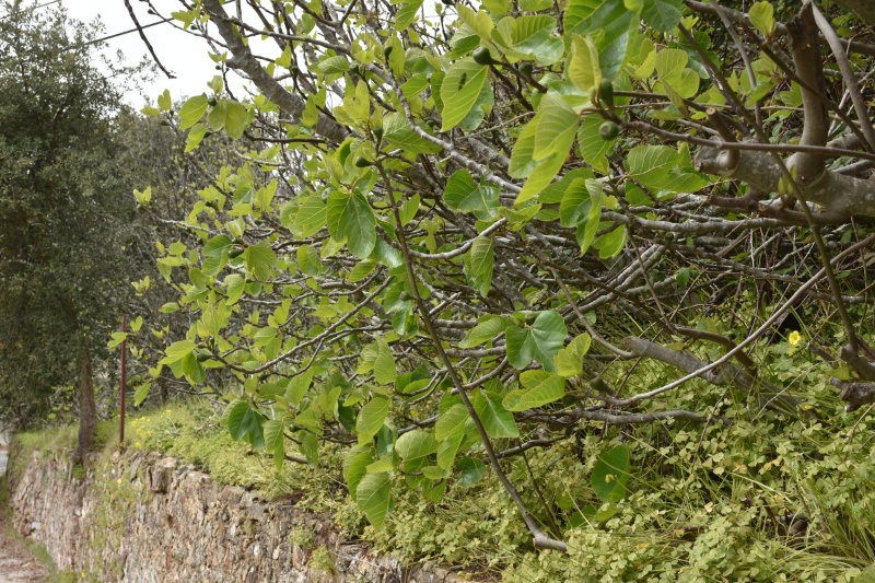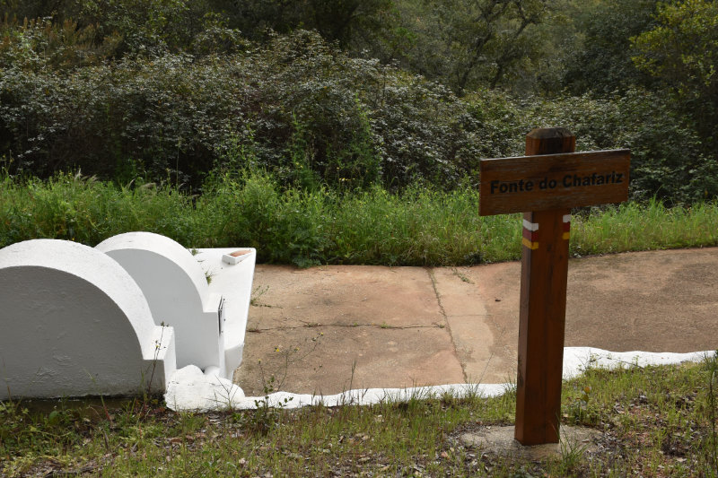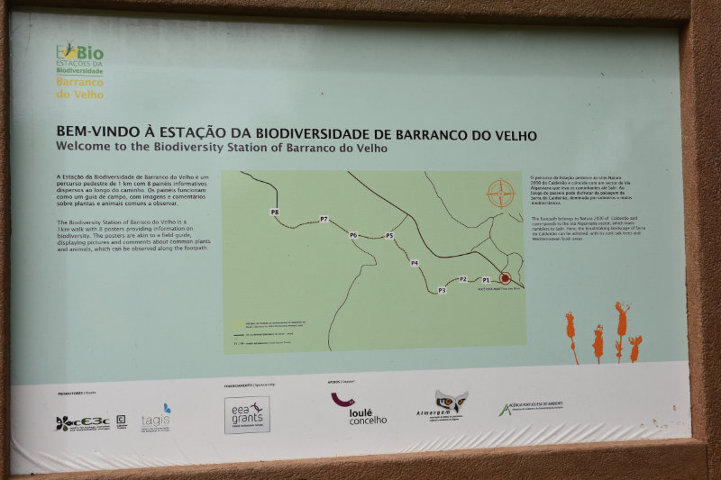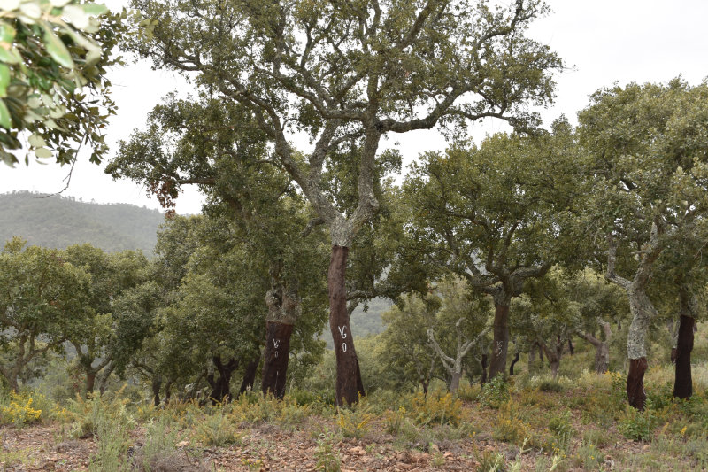 The trail is a loop of 3 or 4 kms beginning and ending where we parked the car. It descends into the river valley and leads back out again. It’s a relatively well groomed path that wanders through groves of cork trees and offers some wonderful views of the valley and hillsides. Today, however, the view was somewhat obscured by the fog/mist that has covered the entire area for several days. It arrived from the Sahara laden with tiny particles of sand that cover and filter into everything and becomes an annoying slurry of mud when mixed with rain. I will post some images from Wednesday afternoon when the sky became an orange/pinkish/brown colour. The photos look like sepia images.