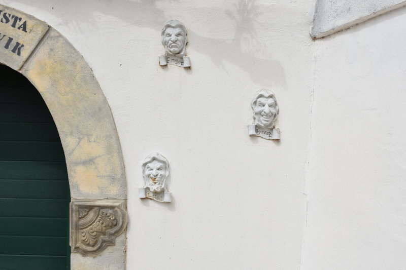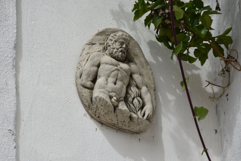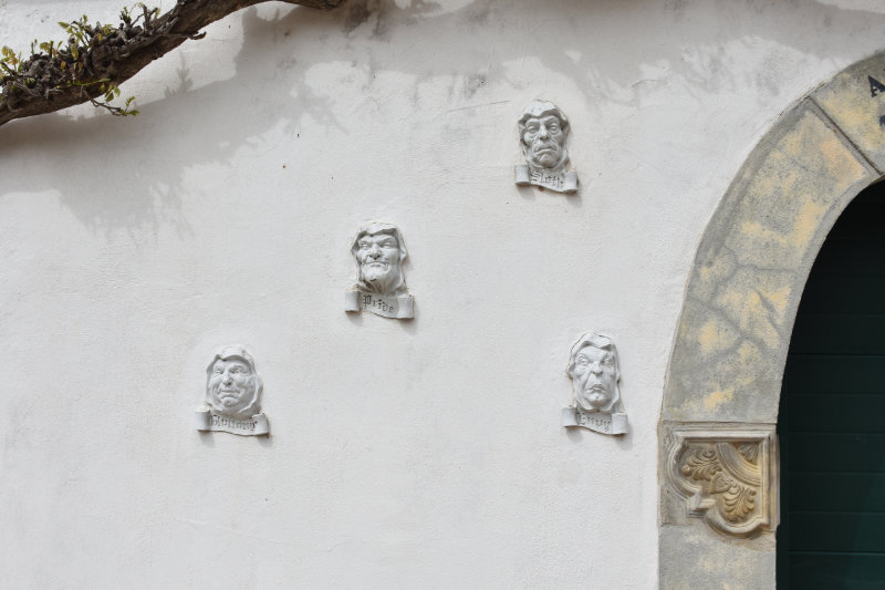 As we followed the trail upwards out of the valley it brought us through a small hamlet of houses. One of the homeowners is very creative and has representations of the Seven Deadly Sins surrounding the gateway.