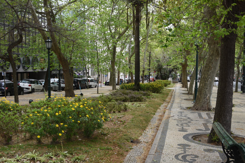 My last day in Lisbon was dedicated to two goals: visit the National Tile Museum and revisit Avenida da Liberdade. The former I had never been to and the latter I had never seen in the springtime . So, I set out in the morning , on foot and walked the avenue. There weren’t;t as many flowers as I had expected but the trees were leafing out quite nicely.