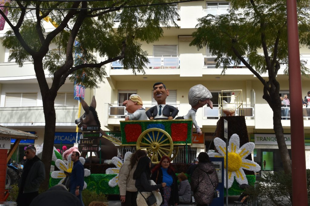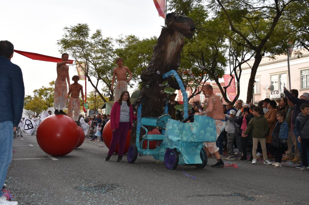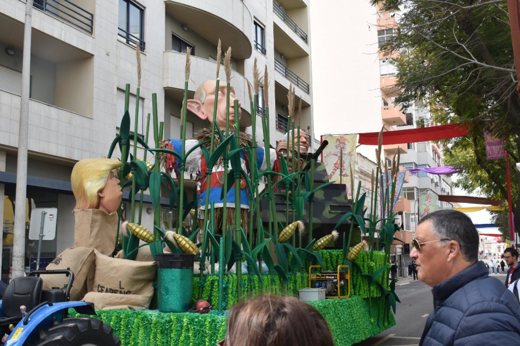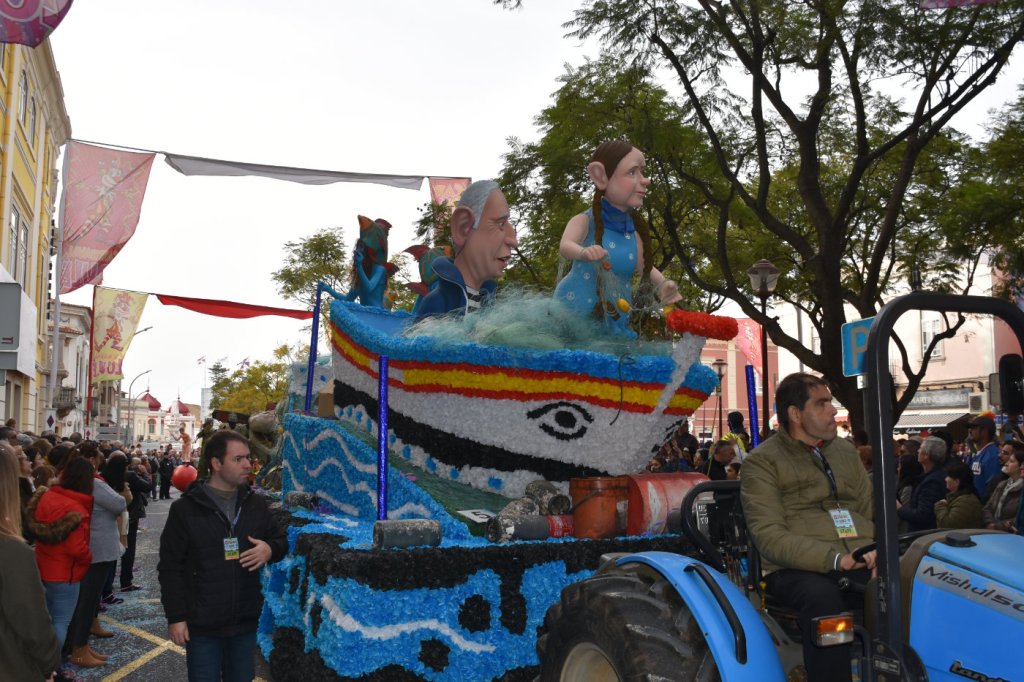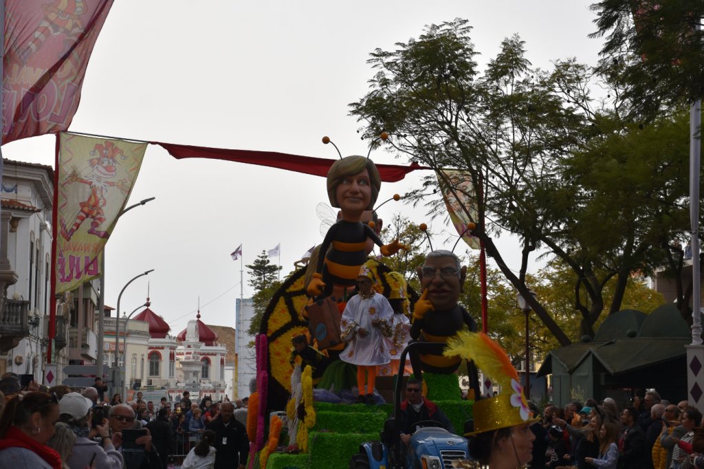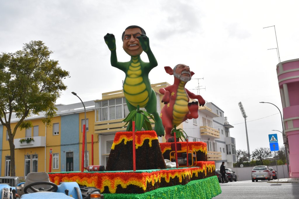 I arrived about 45 minutes before the parade began so had time to photograph the floats above. The theme ““Oh Zé… Have you seen Algarvensis?” is a bit of a puzzler but it refers to an extinct amphibian that lived in the Penina Geosite in Algarve approximately 227 million years ago. Also, the Loulé Carnaval is 117 years old and going strong! The floats reflect the theme and there’s also some political satire portrayed.