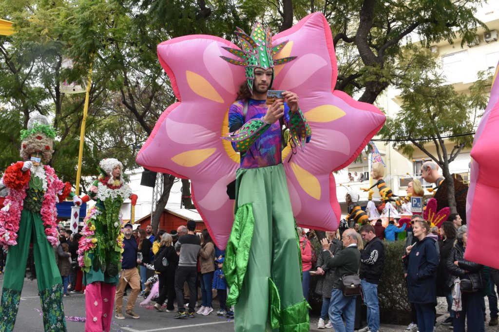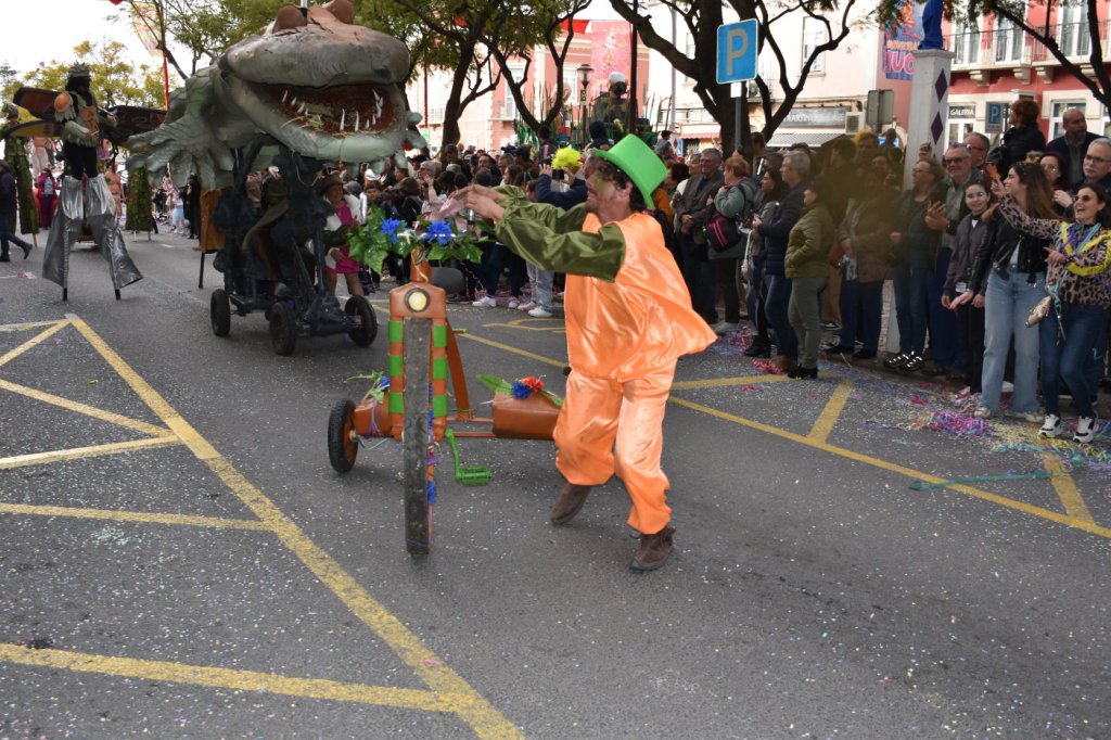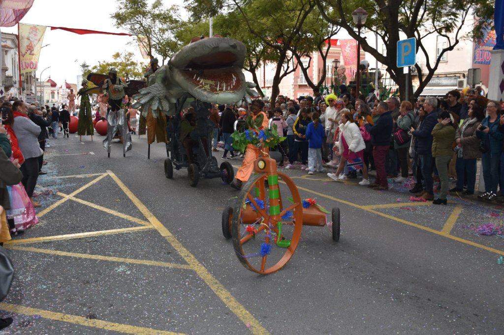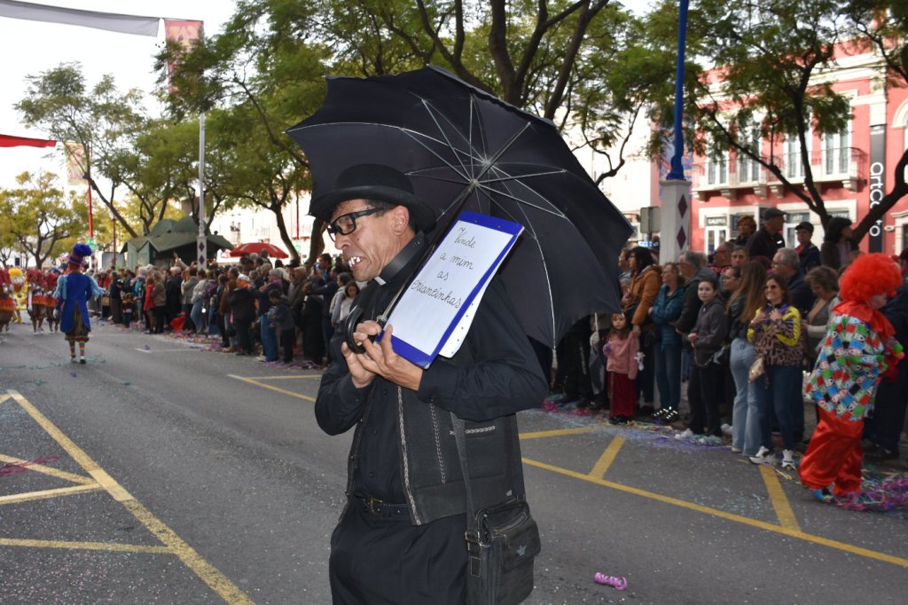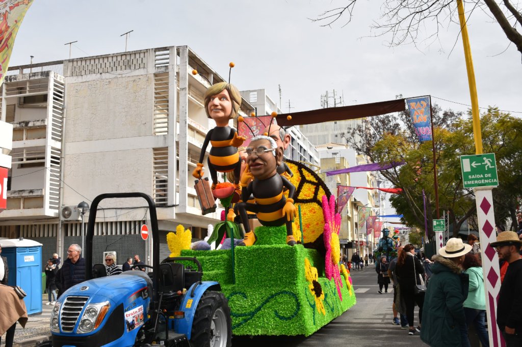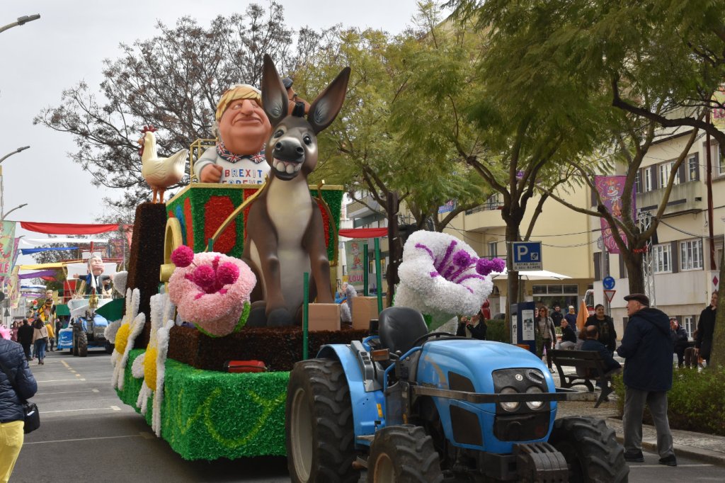 I arrived about 45 minutes before the parade began so had time to photograph the floats above. The theme ““Oh Zé… Have you seen Algarvensis?” is a bit of a puzzler but it refers to an extinct amphibian that lived in the Penina Geosite in Algarve approximately 227 million years ago. Also, the Loulé Carnaval is 117 years old and going strong! The floats reflect the theme and there’s also some political satire portrayed.