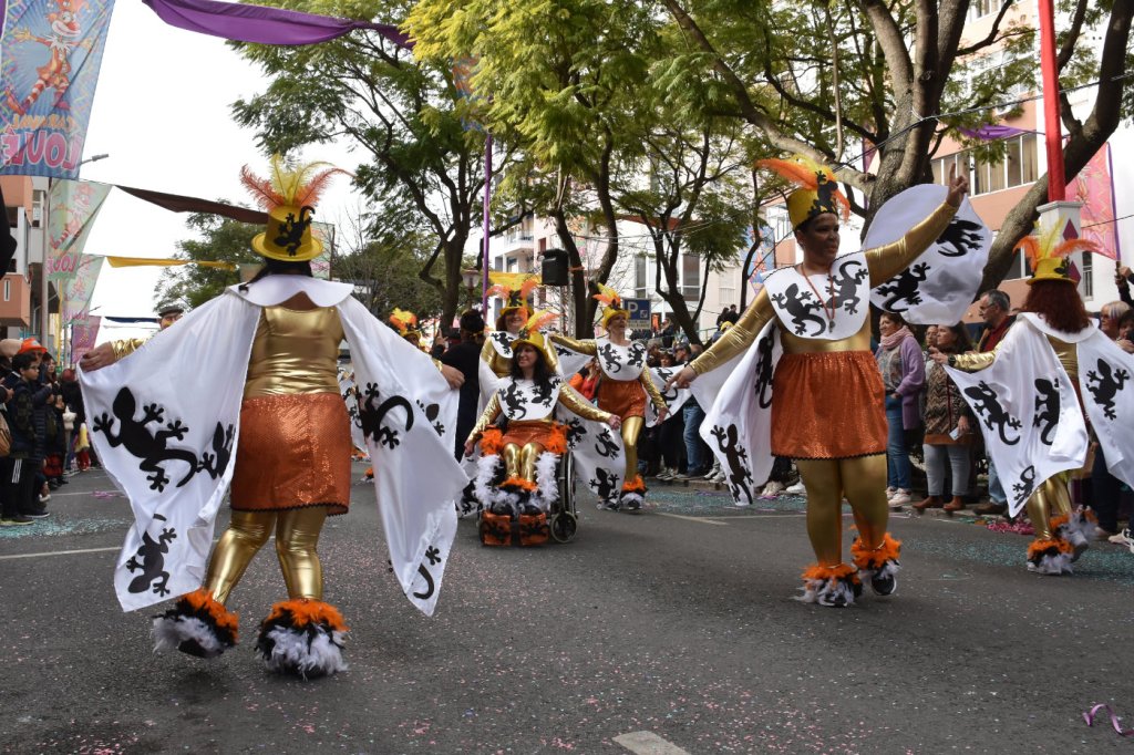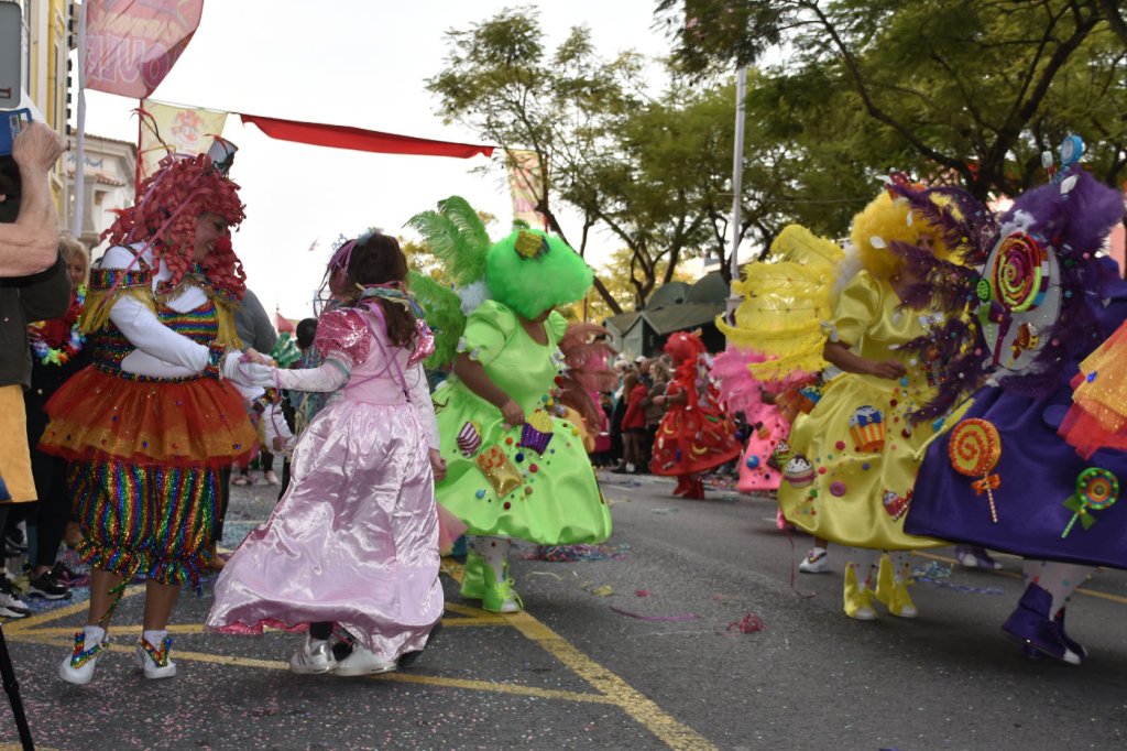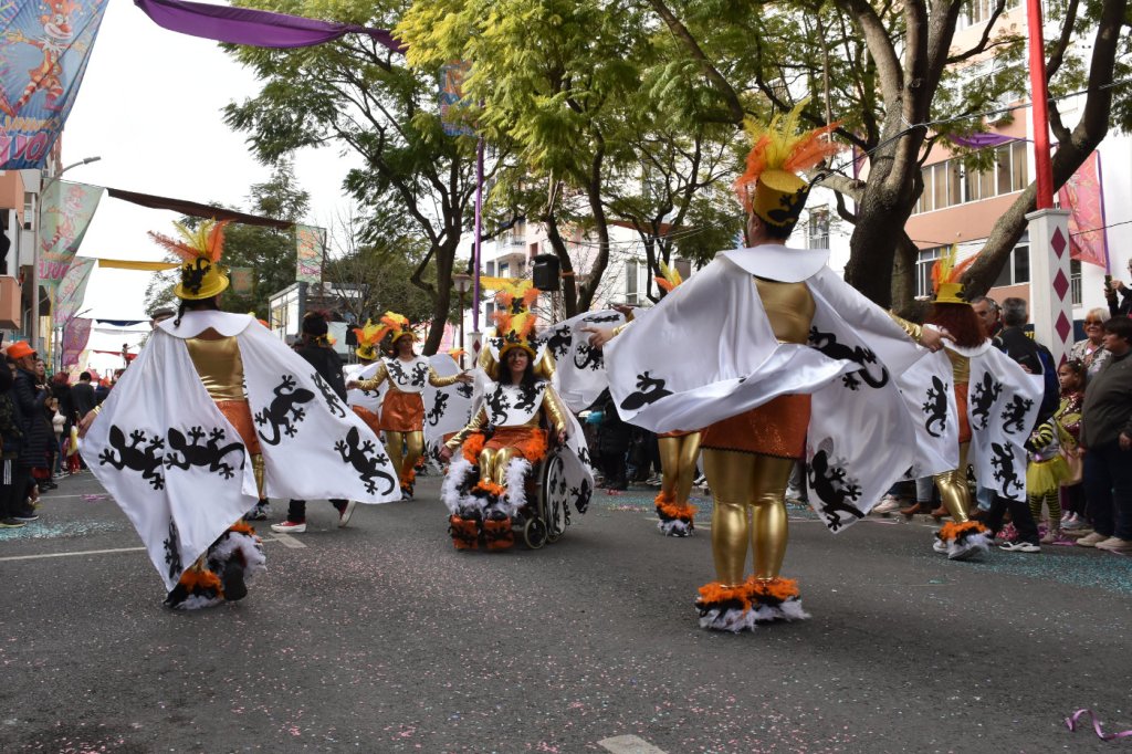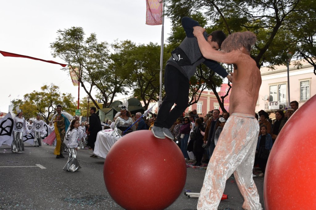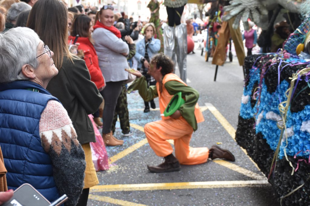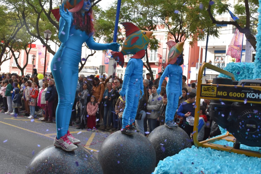 I arrived about 45 minutes before the parade began so had time to photograph the floats above. The theme ““Oh Zé… Have you seen Algarvensis?” is a bit of a puzzler but it refers to an extinct amphibian that lived in the Penina Geosite in Algarve approximately 227 million years ago. Also, the Loulé Carnaval is 117 years old and going strong! The floats reflect the theme and there’s also some political satire portrayed.
