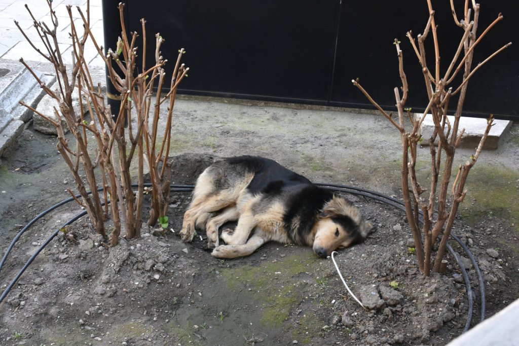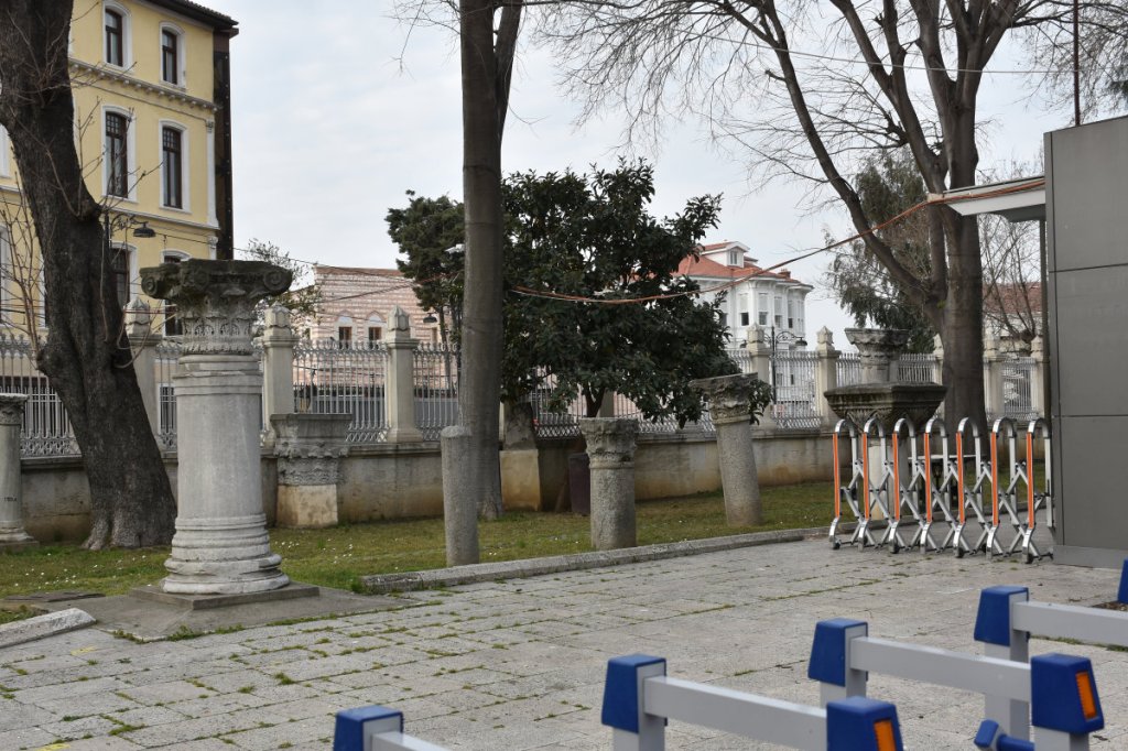 A bit of impromptu urban comedy happened while we sitting on the wall at the Martyrion. Up the bank opposite us were three dogs stretched out on the grass sound asleep. One of them languidly got up and stretched at the same moment a man hopped over the wall onto the grass. The dog reacted instantly starting to bark and run after the man. The man’s reaction was to quickly scamper back up the hill and over the wall. The dog stopped barking and running and sauntered off in the opposite direction. Now we know why the dogs are there: to keep people off the grass!