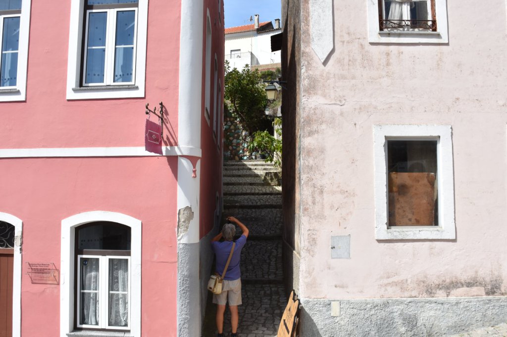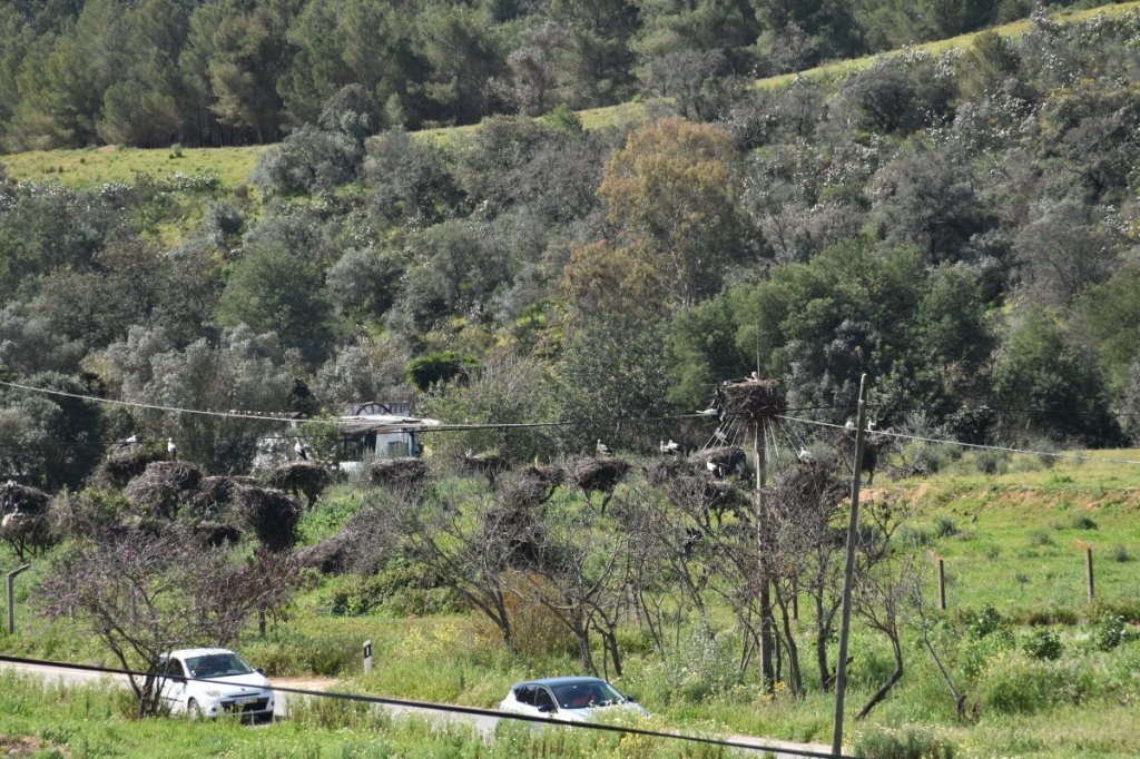 Monchique and storks go hand in hand from my point of view. As we drove into the historic town, the hills were lined with stork nests on top of electrical poles, and posts of all kinds. It was a road trip for Randy, Marc and myself. Jackson had a rest at home that day as it didn’t seem to be a dog appropriate trip. Marc was scheduled to meet an artist friend who was holding a vernissage in the centre of the city.