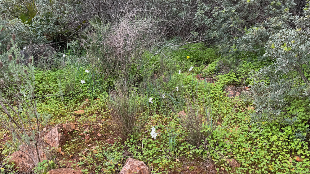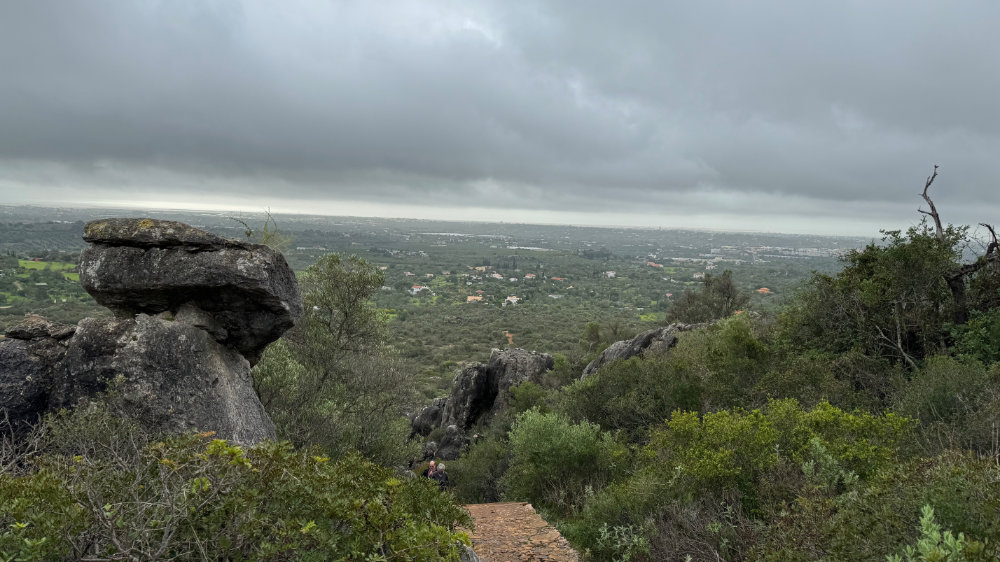 It was the usual suspects that gathered at the trail head of Cerro da Cabeça outside of Moncaraphaco. It’s not as high as Sao Miguel and further east. Randy, Harald, Patricia and Gary, myself and Jackson set out on a leisurely hike under cloudy skies. It was quite warm and soon the jackets and hoodies began to come off as we tackled the fairly steep, upward climb. Once we reach the observation point where the small look out tower is, the trail levels off for a fair distance before it begins the descent on the other side.