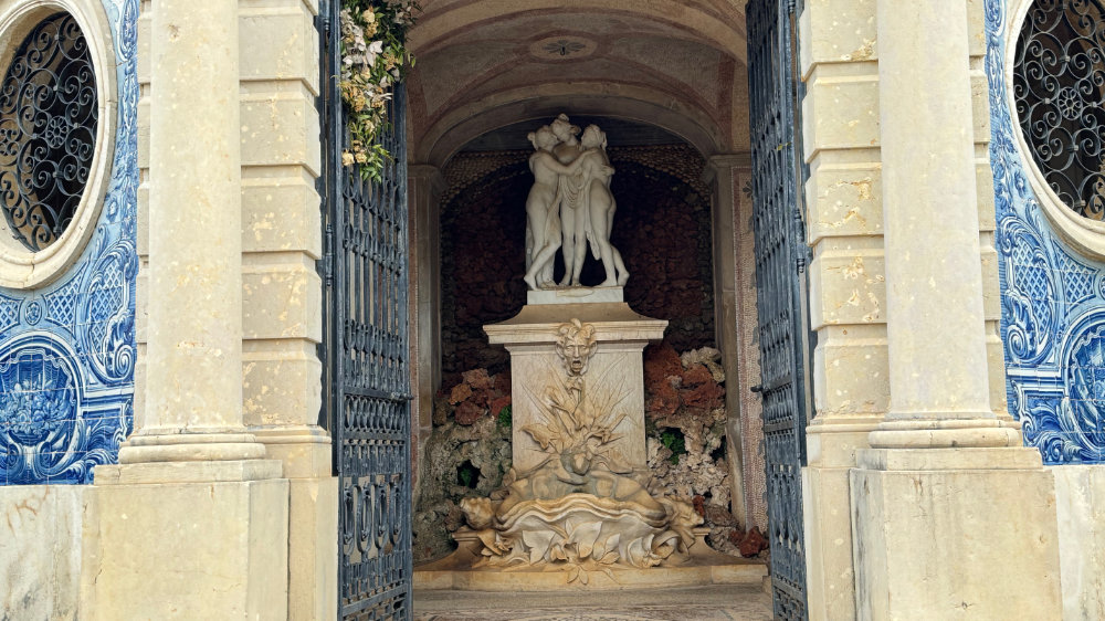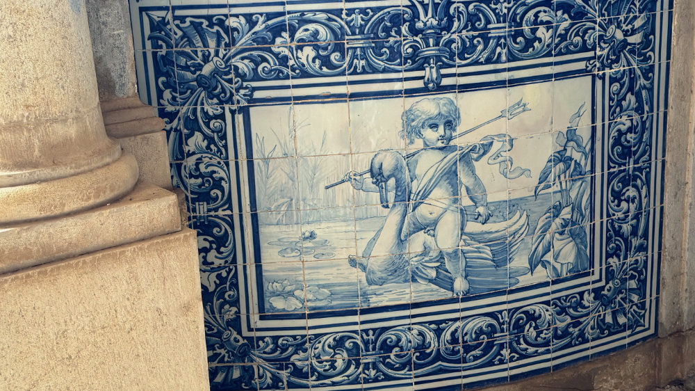 The Pousada used to be a private estate that was converted to a bespoke hotel. The park is open to the public and one can tour the inside without having to pay for a room. I’m always impressed by the detail of the ceramic tiles and mosaics that decorate the exterior of the formal entry to the palace. Here are some examples and keep in mind, they were hand painted and designed for this specific location.