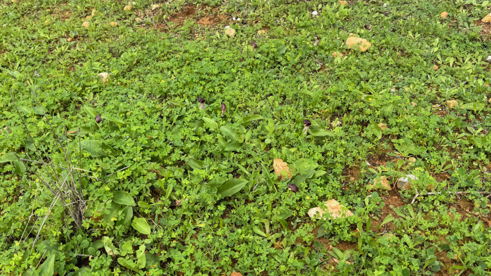 From Wednesday to Friday, January 17 to 19, has been a constant game of avoiding rain squalls and thunderstorms. Not totally unusual for this time of year in the Algarve and the water is desperately needed to replenish seriously depleted reservoirs. It does, however, hamper hiking in a serious way. Trails become muddy and very slippery almost instantly. The effect of all this moisture, is the verdant greenery and a plethora of small plants popping up everywhere. My walks with Jackson have been closer to home base and a rediscovery of some favourite spots in Estoi.