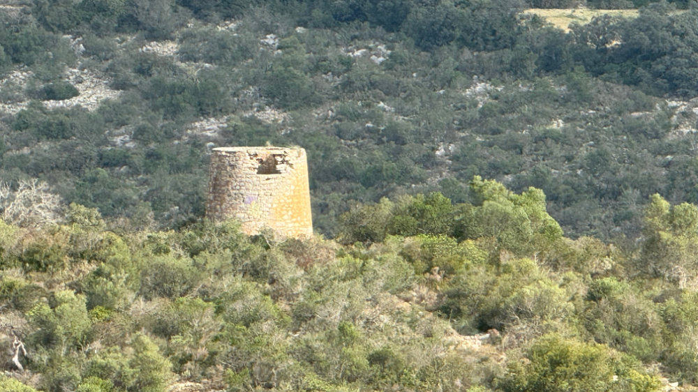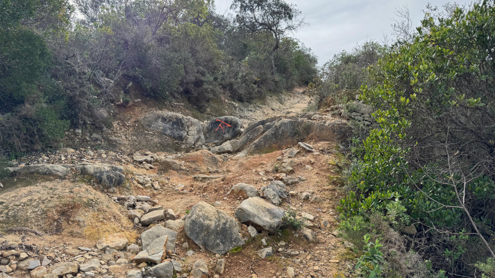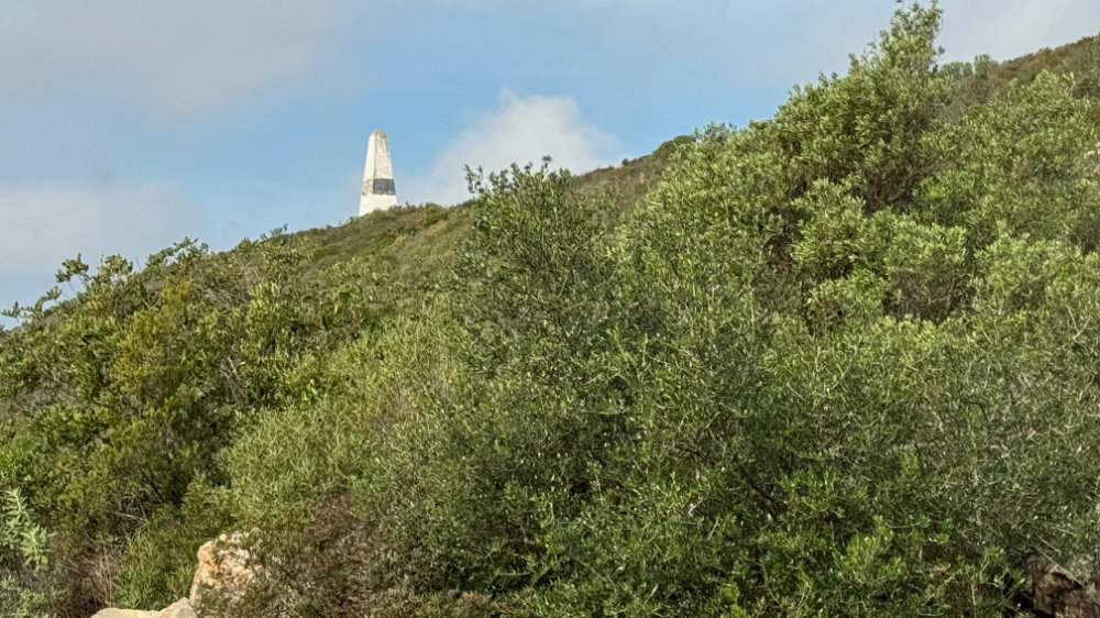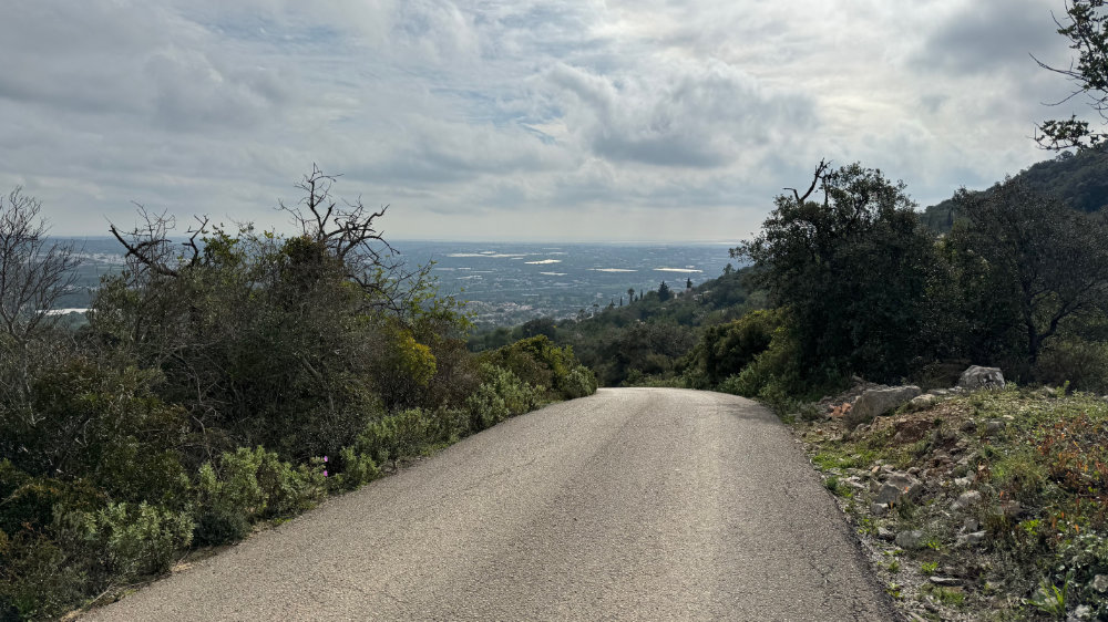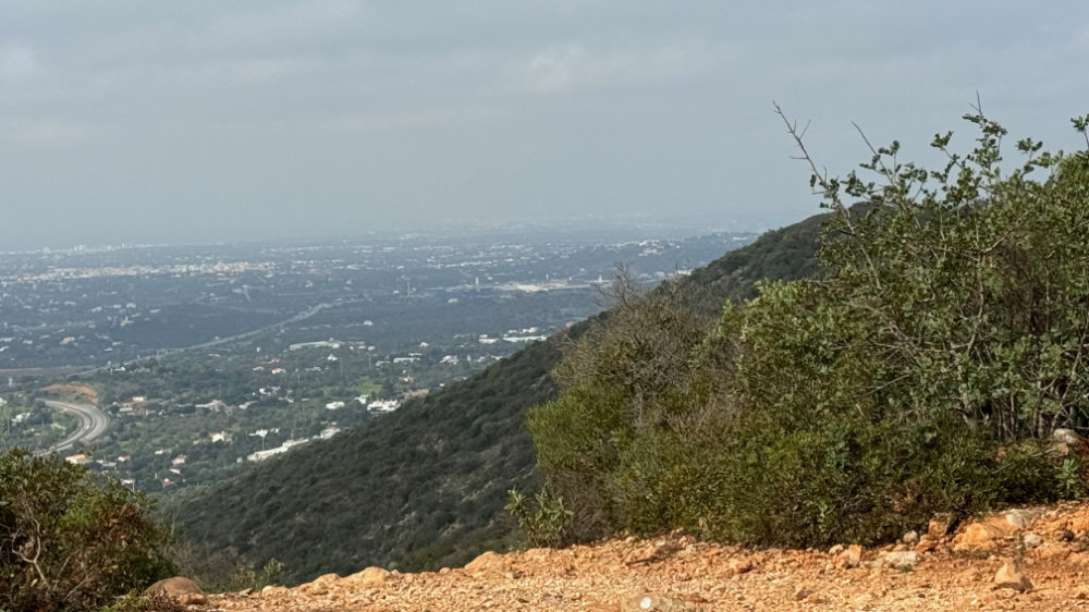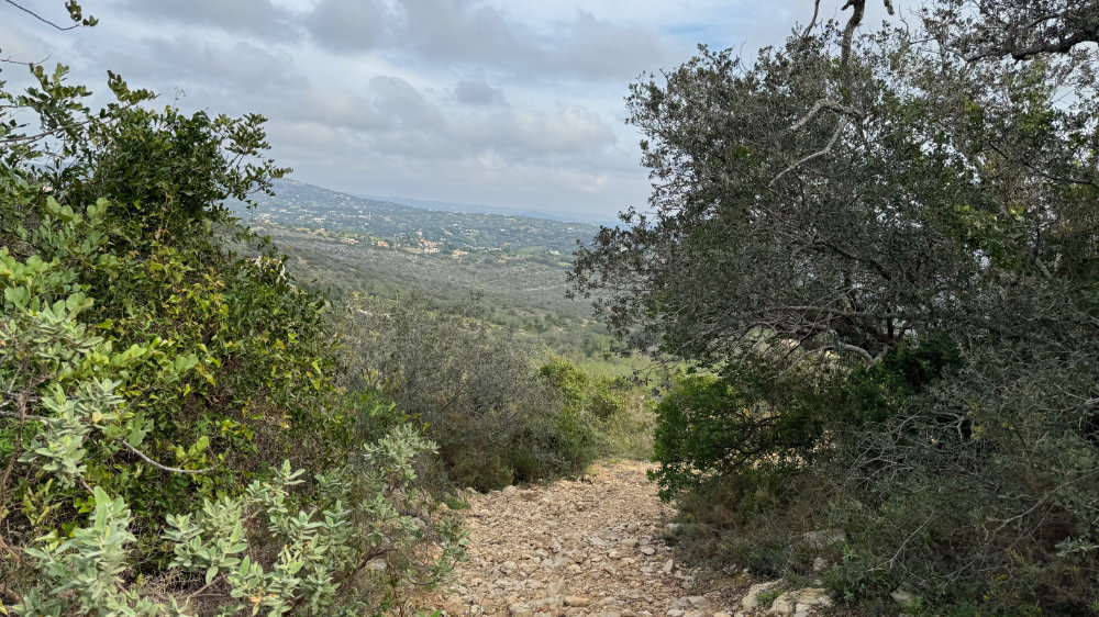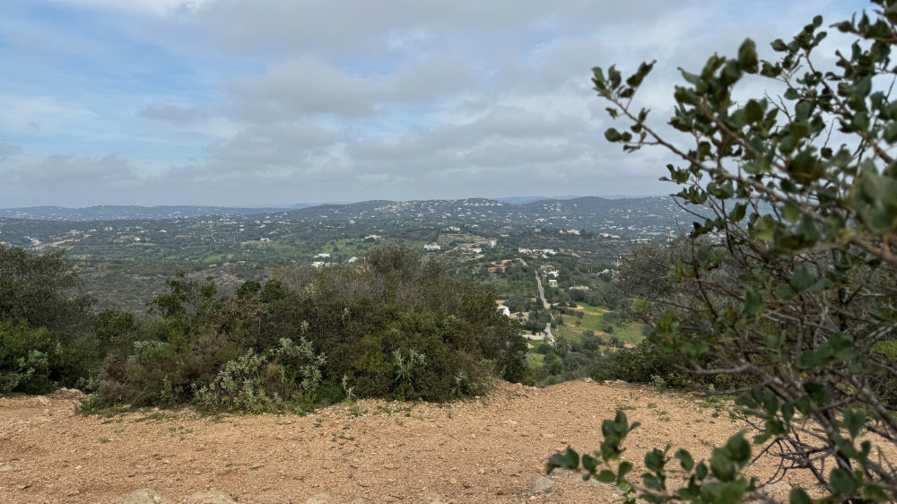 As many of you know, I have a substantial fear of heights and that can be seriously tested on a regular basis in the Algarve. On Monday January 29, I decided to bite the bullet, metaphorically speaking, and explore Cerro do Guilhuim, a small mountain to the west of Estoi. From a distance, it looks like a fairly easy ascent. Up close, it proved otherwise with parts of the trail appearing to go straight up or down depending on the point of view. With Jackson for moral support, we set out on the trail facing the autoroute, got three quarters of the way up and said, nope, that’s it and went back down to where the car was parked.