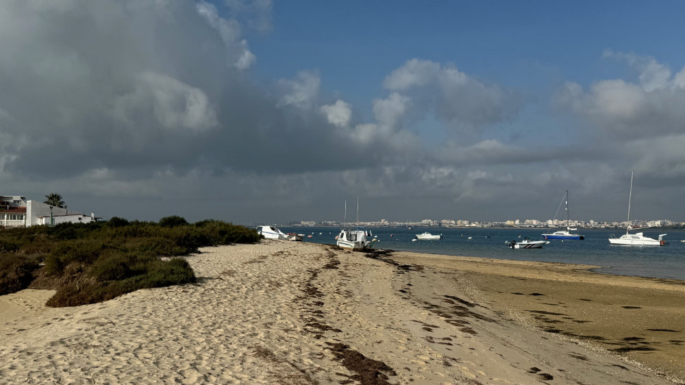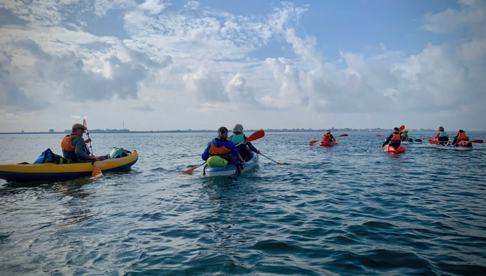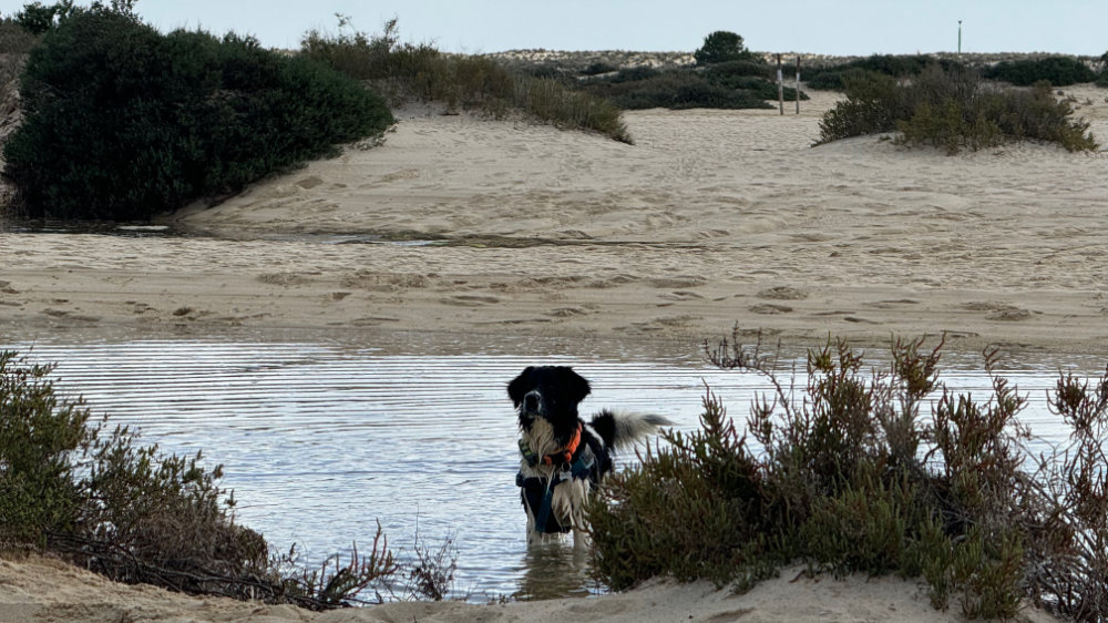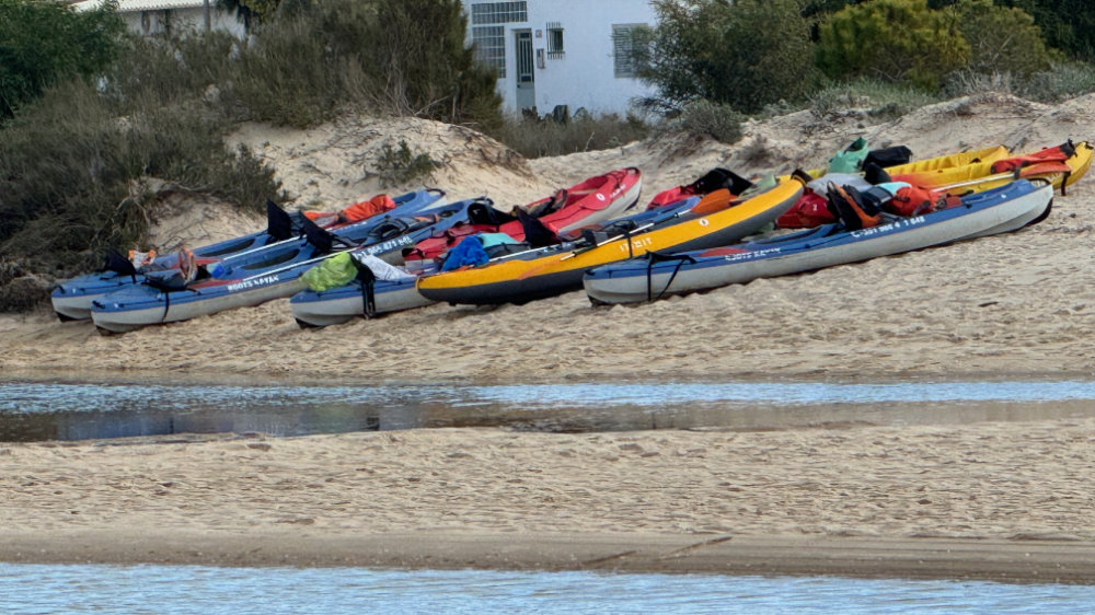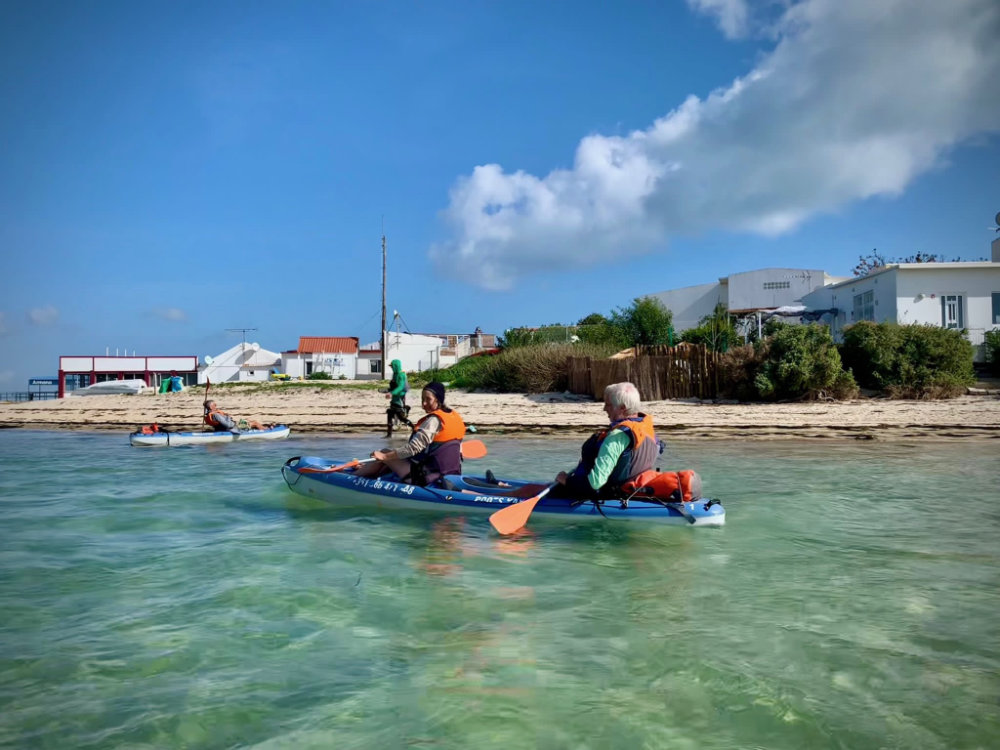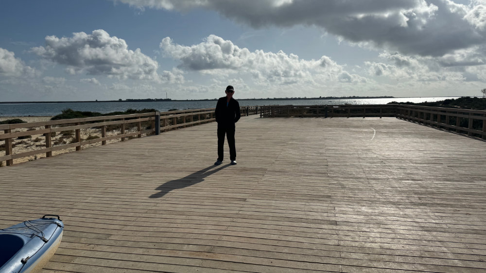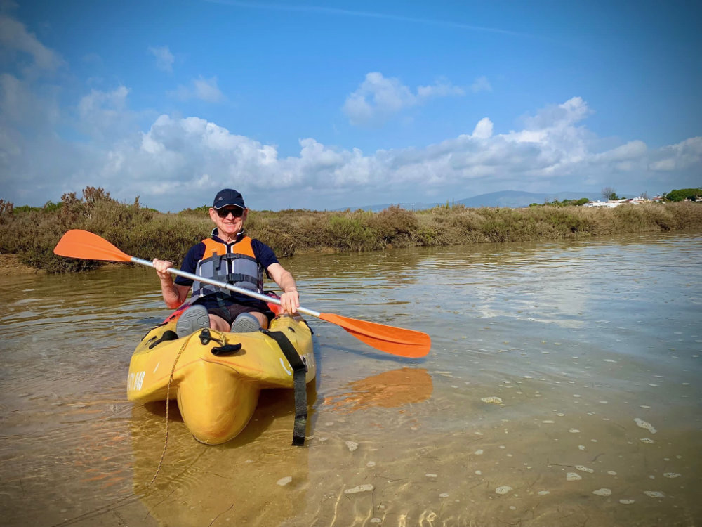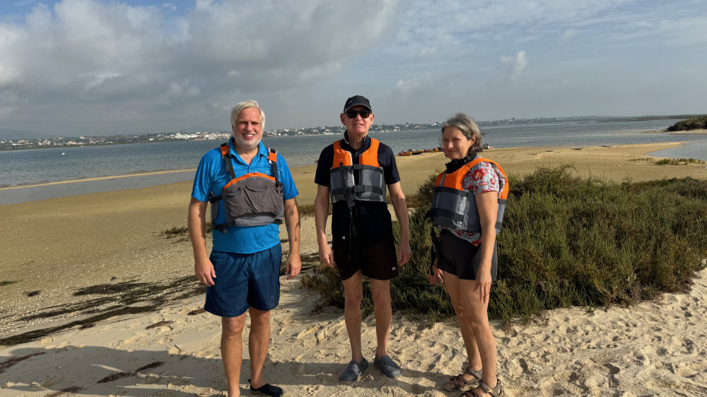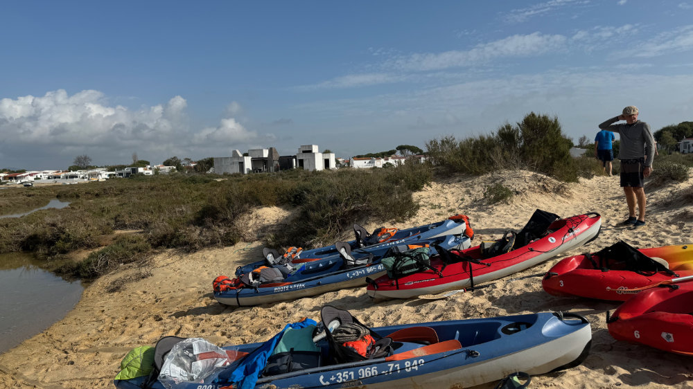 Kayaking is an activity I really do enjoy. It must be said, however, that my kayaking experience, until Wednesday February 7, was limited to fresh water inland rivers in southwestern Ontario and western Québec. My Quinta neighbours, Guido and Karine invited me to join their hiking group in a kayaking adventure organized by Kim. Our staring point was the beach east of Olhão and our destination was a section of beach on the Island of Armona. I accepted the challenge, so off we went early in the morning along with our neighbour Os. His wife, Sue, kindly agreed to take care of Jackson for the day. I knew from previous experience that kayaking isn’t exactly his favourite thing to do.
