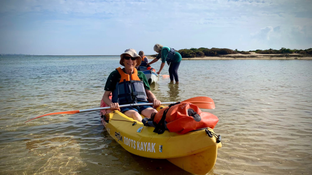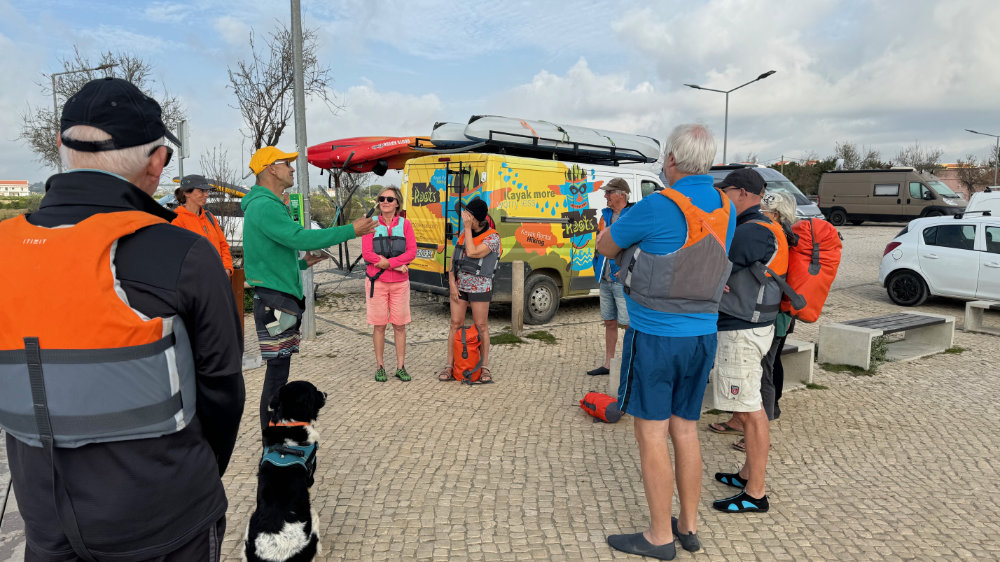 The trip back was at high tide and the wind was coming in from the south west. We headed across the channel with the current and wind pushing us sideways. Paddling took a bit of extra effort! We all arrived safely on shore and proceeded to help Kurt and Kim load up all the equipment. if you’re in the Algarve and want to kayak, I highly recommend him and Spike for an amazing adventure. If Kim is involved, even better. His web site is http://www.rootskayak.com . His motto: Worry Less, Kayak More!