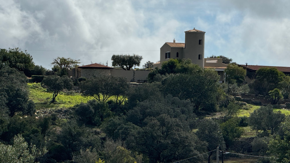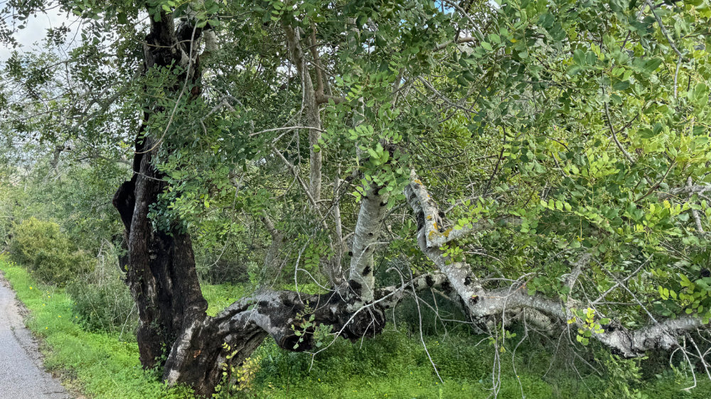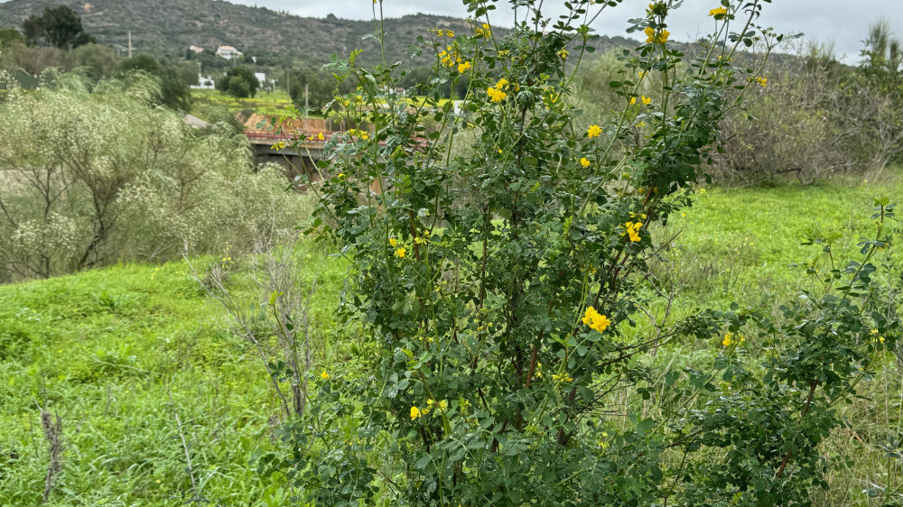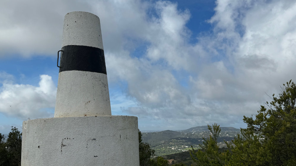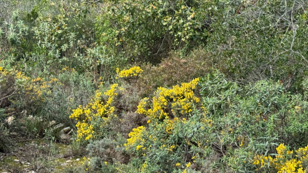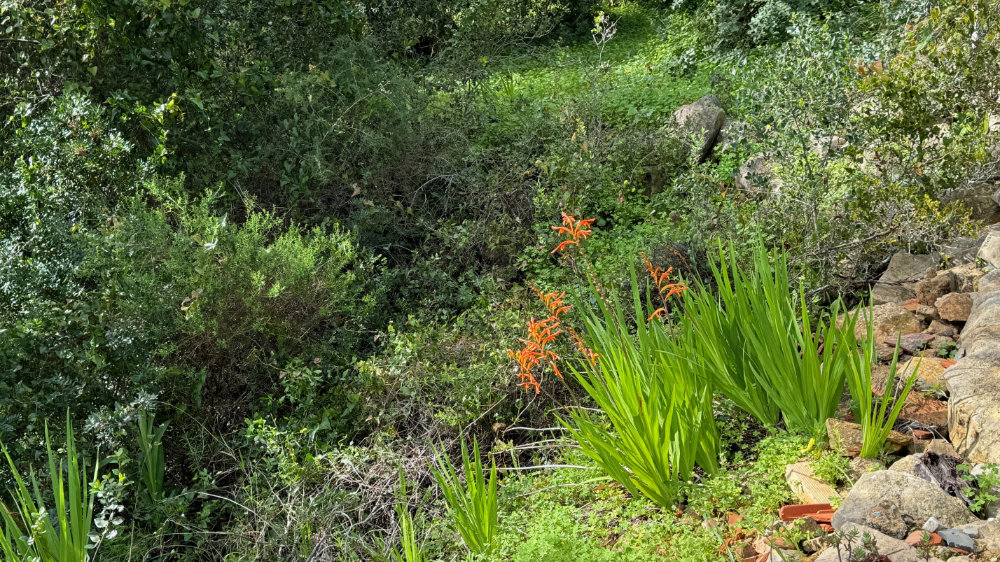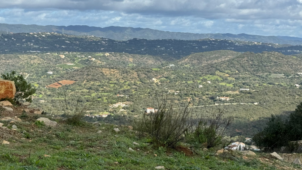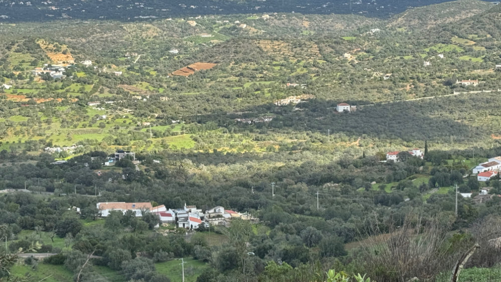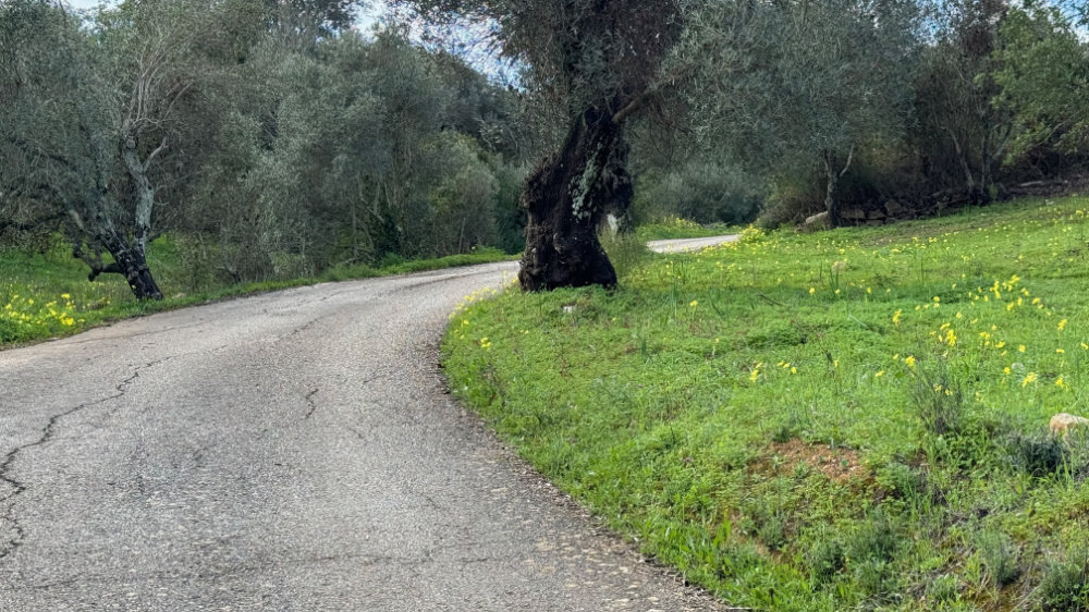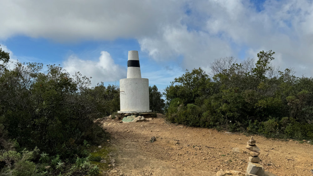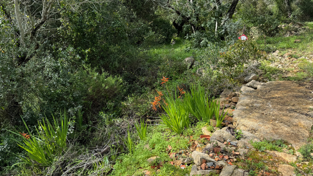 Sunday was a literal washout with the rain but Monday Feb 12 was sunny with the mercury hitting 20 degrees Celsius by early afternoon. it was high time for a decent hike, so Jackson and I set off up the hill behind the quinta toward the shrine. Three quarters of the way up, there is a gravel track that runs laterally across the south side of the hill and connects with a tiny paved road just east of the summit. I thought it time to revisit this route.
