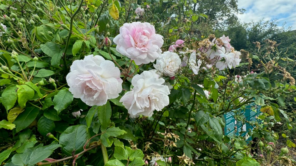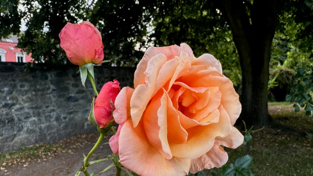 The colour and perfume of the roses was intoxicating as they glowed in the late afternoon light. There had been a shower of rain – frequent in Kilkenny!- making everything fresh, green, and dewy.