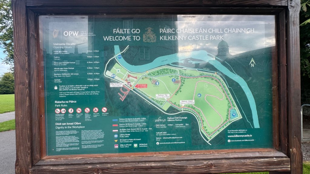 From the rose garden, I went around the north east corner of castle, following the wall fortification above the River Nore that lead to the extensive park and playing fields that are part of the castle grounds.
