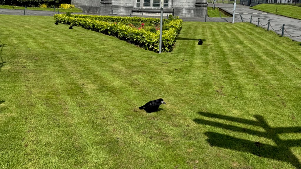 The blackbirds were on the lawn of the gothic building that is a private school. They were quite sure of their ownership of the territory and were not about to cede a centimetre to some intruder! I discovered this place while on a walk during lunch.