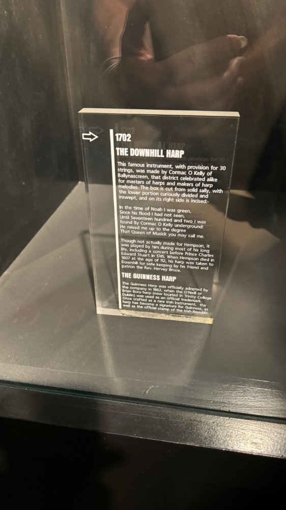 And then it was time to set off for the Guiness Storehouse Museum to see my favourite harp: the Downhill harp.