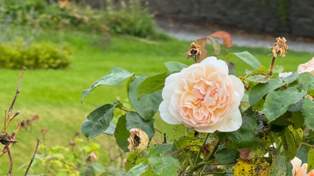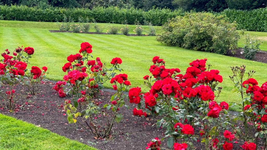 The 1000 year old Parade Tower of Kilkenny has been the venue for two of the public concerts associated with the harp festival . The second concert was on Tuesday evening so I made an attempt at more shots of the grounds including the roses. Unfortunately, walking on the grass in the rose garden is forbidden.