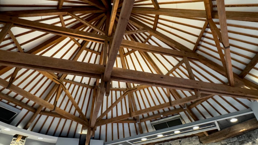 The interior of the concert hall is in the round and has several levels. I chose to sit up in the highest level in front. There was an excellent acoustic and a tantalizing view through the windows of the hills beyond Kilkenny as the sun went down.