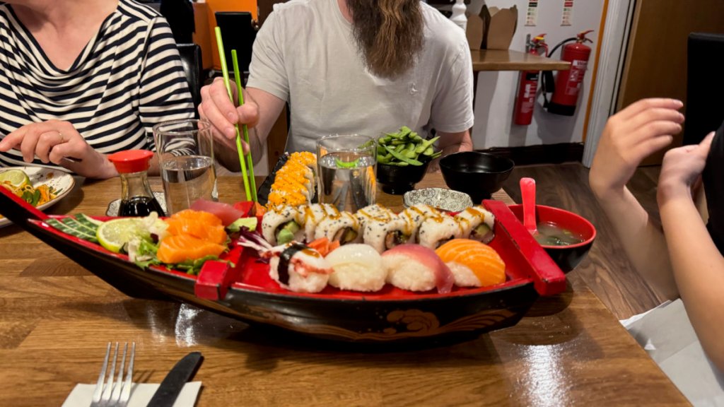 There are lots of sources of delicious food in Kilkenny. Evenings were a great time to meet up with the some of the crowd from school, teachers and students altogether. On Wednesday evening, the choice was a Japanese restaurant that had tasty food and intriguing presentations of the food.