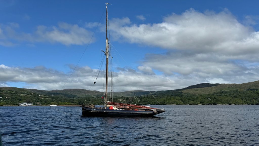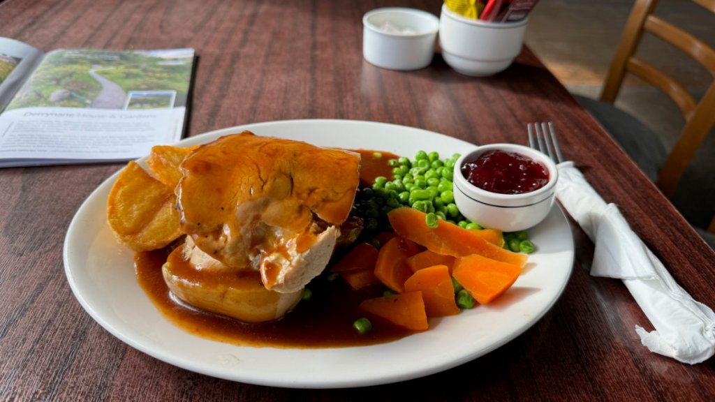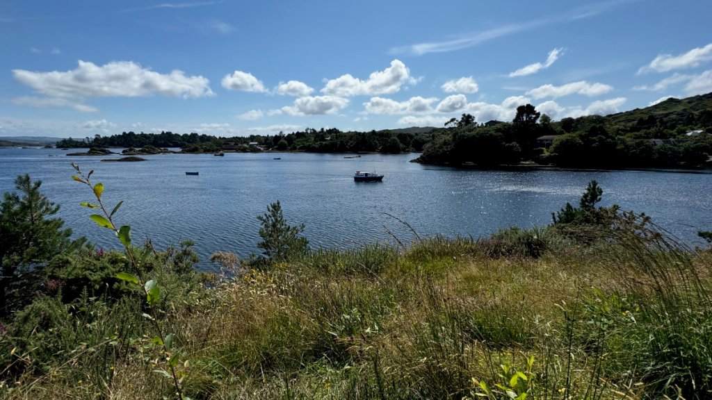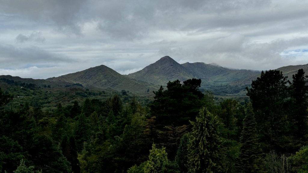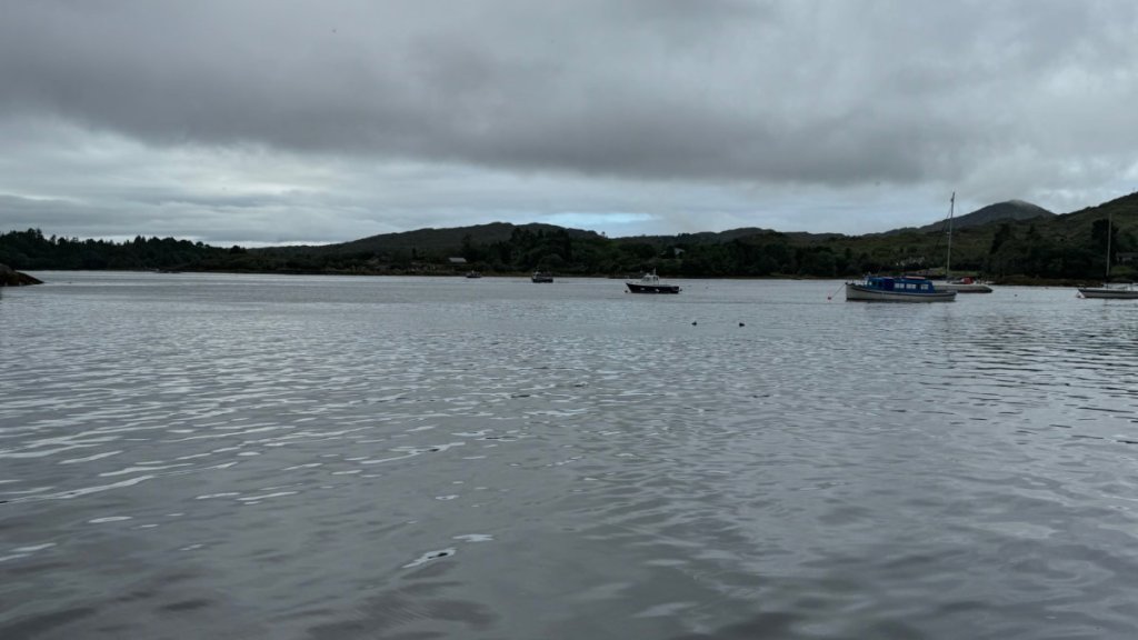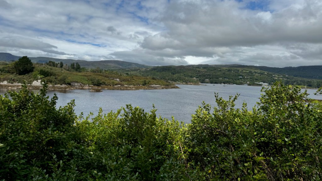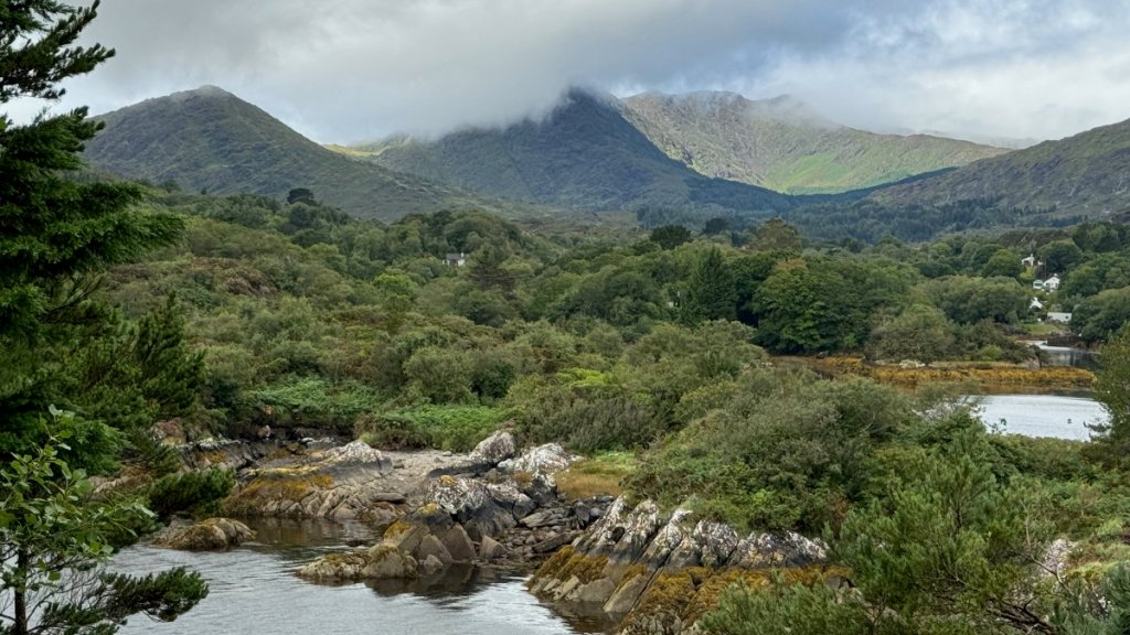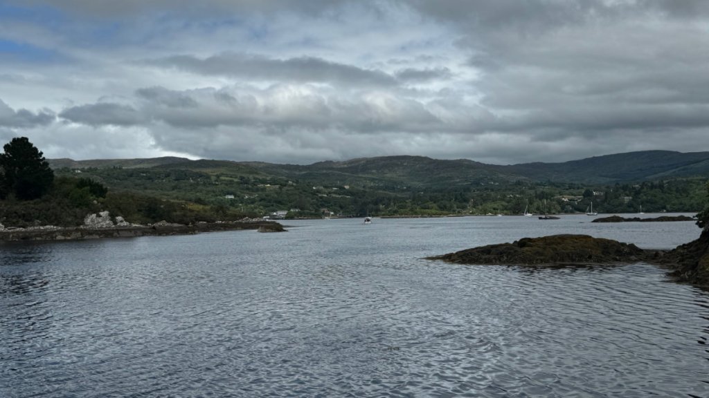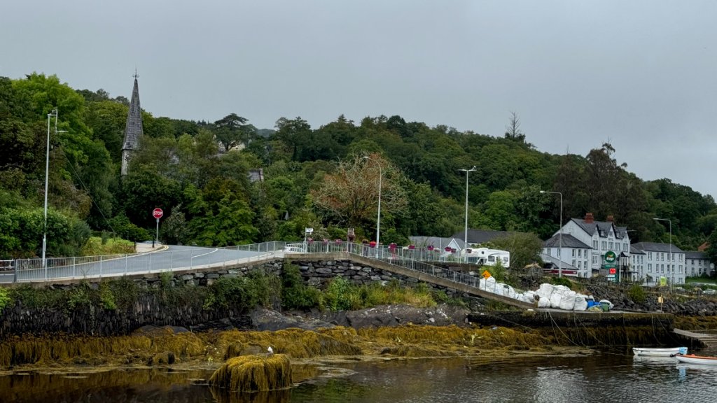 Having followed a somewhat circuitous route after the turn mishap near Cork, I arrived at the Ouvane Falls Hotel not far from Bantry. It was yet daylight and I was hoping the kitchen would still be open. I had phoned to let them know I would be arriving later than anticipated. Dinner was delicious but what followed was so much fun. I was sitting in the mud/dining room enjoying a pint of Beamish and the view of the river when all of a sudden a crowd of men and women began arriving and the waiter began moving tables and chairs. There was going to be a live band with Ceilidh dancing. What a friendly bunch! They get together every Sunday evening with the two or three band members and dance the traditional dances plus foxtrots and waltzes. The Ceilidh dancing reminded me of our square dances; promenades, à la main droit, doh, is, doh, etc. In this case, there wasn’t a caller; the dancers seemed to know when and what to do at the right moment.