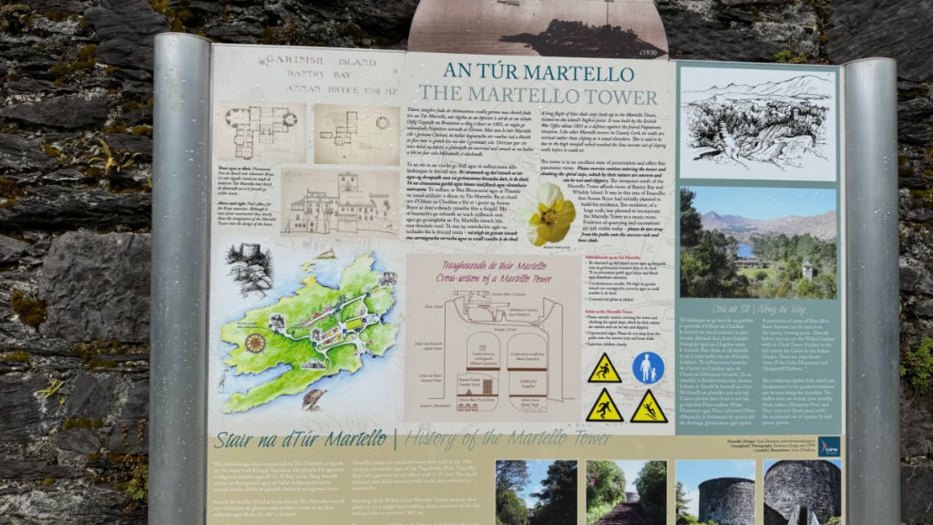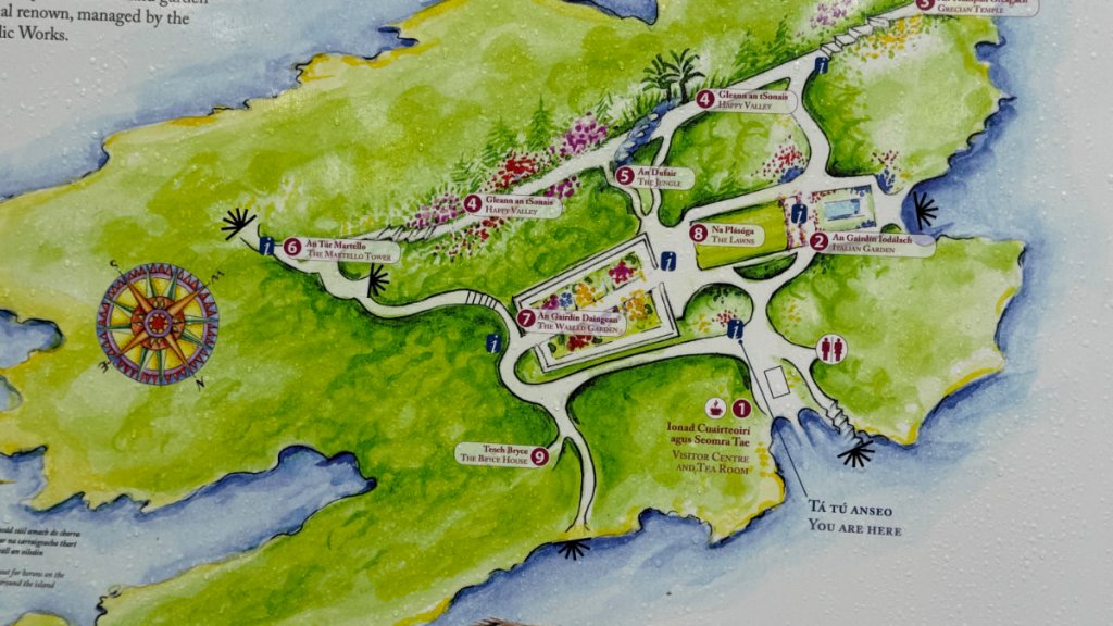 Annan and Violet Bryce were the owners of this island before WWI – they lived in London and their wealth came from diamond mines in Russia. The plan was to build an elaborate Italian villa with gardens. Unfortunately, the Russian revolution put an end to their fortune and Annan passed away. Violet made the decision to sell everything that remained and move to the island she dearly loved. For years, she lived in the small gardener’s cottage with a companion/cook she hired locally, Maggie O’Sullivan. Maggie lived for the rest of her life on the island. Violet Bryce also hired Murdo McKenzie as head gardener and he, too, live on the island for the rest of his life. It was the talent of Murdo that produced the existing garden based on the design of Harold Peto the renowned architect and garden designer. Exotic plants had been brought in before the “crash. and most of them perished because of the rough climate. It was McKenzie who installed shelter belts of Scots and Monterey pine creating a micro climate on the island. Annan and Violet’s son Roland Bryce donated the island to the Republic of Ireland in 1953.