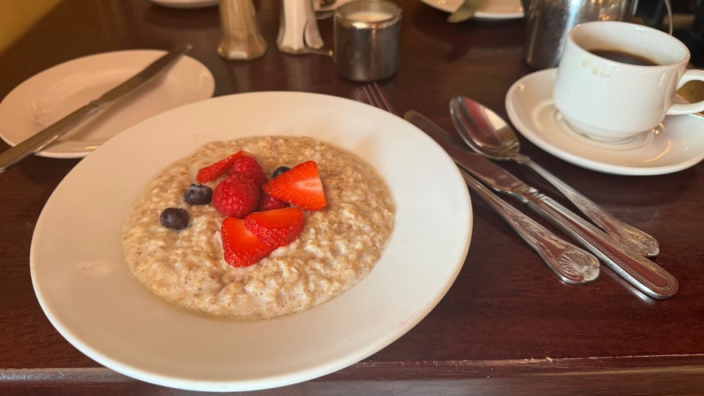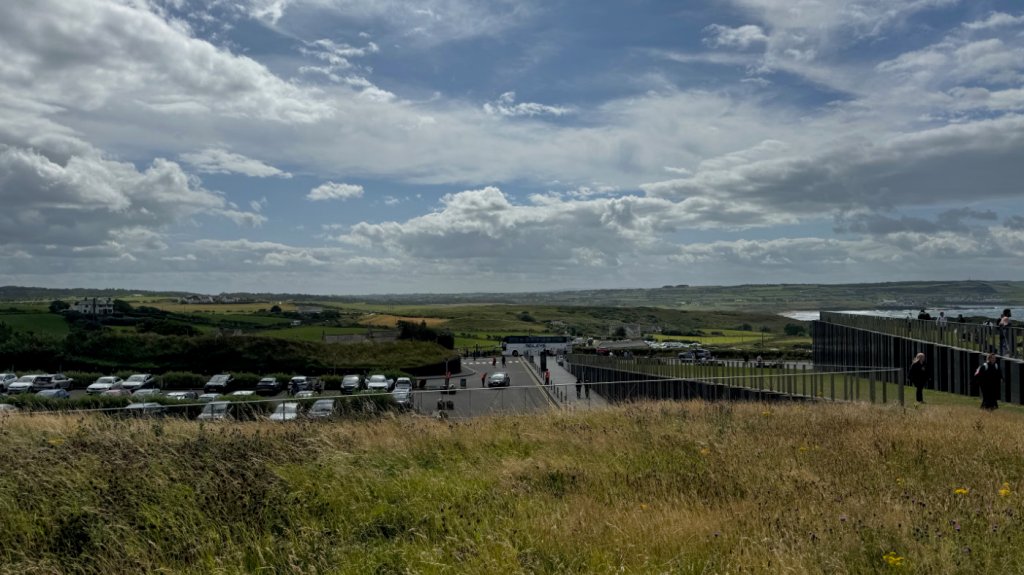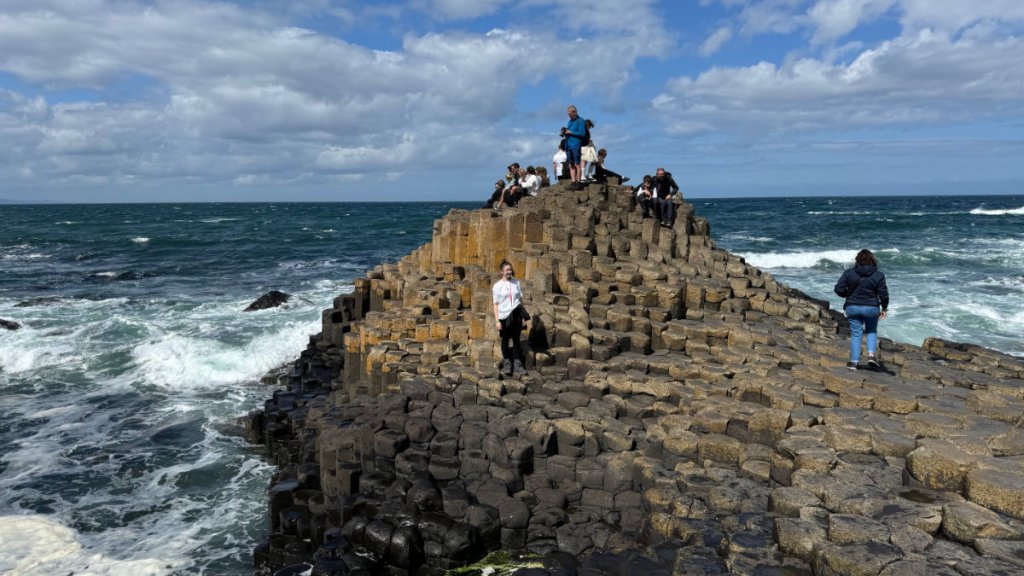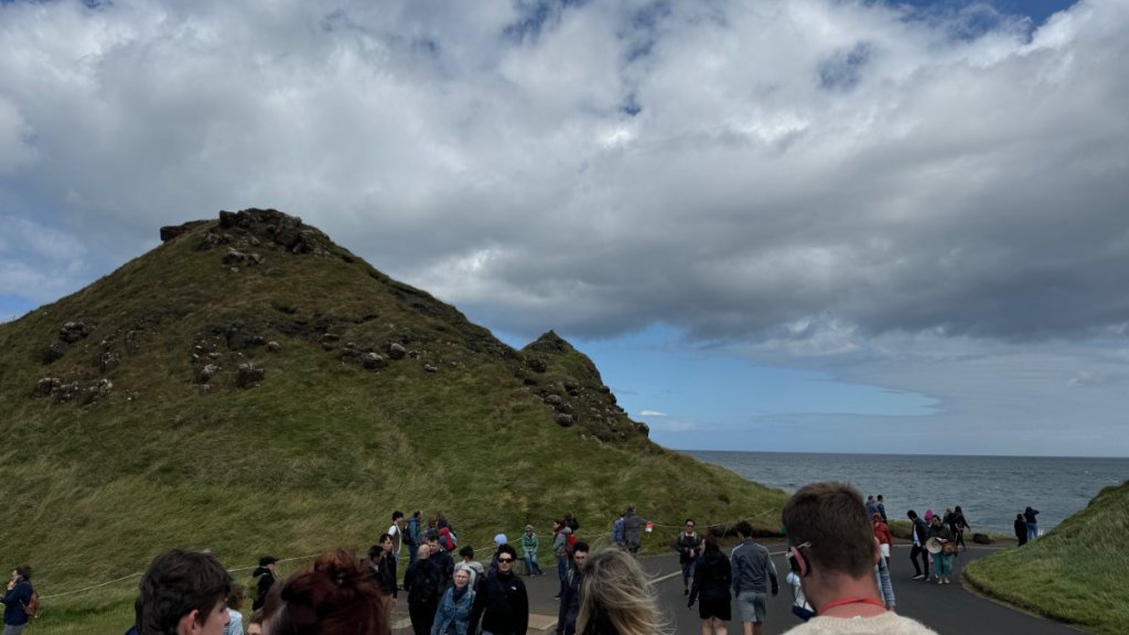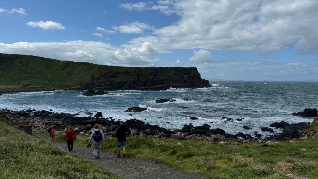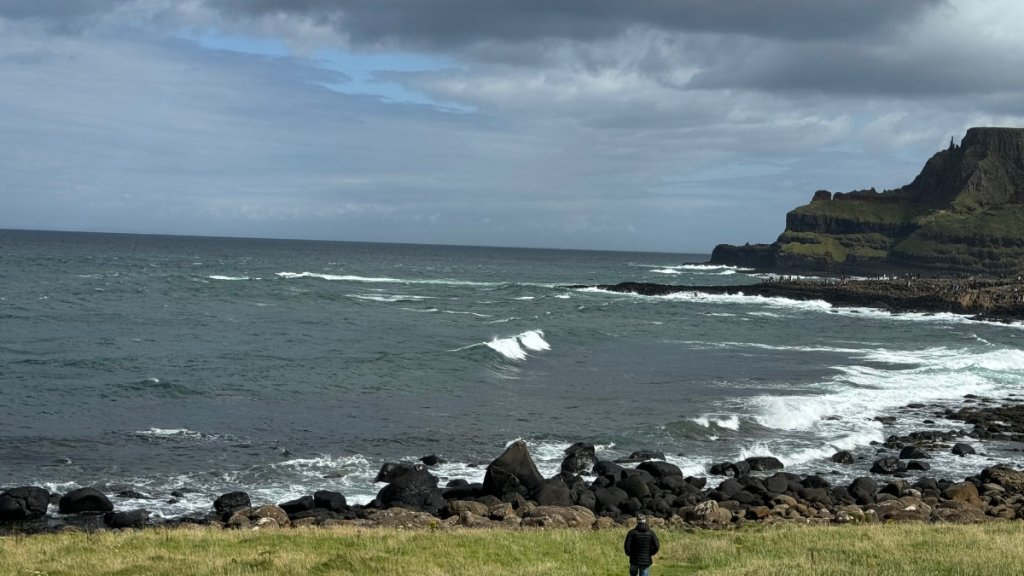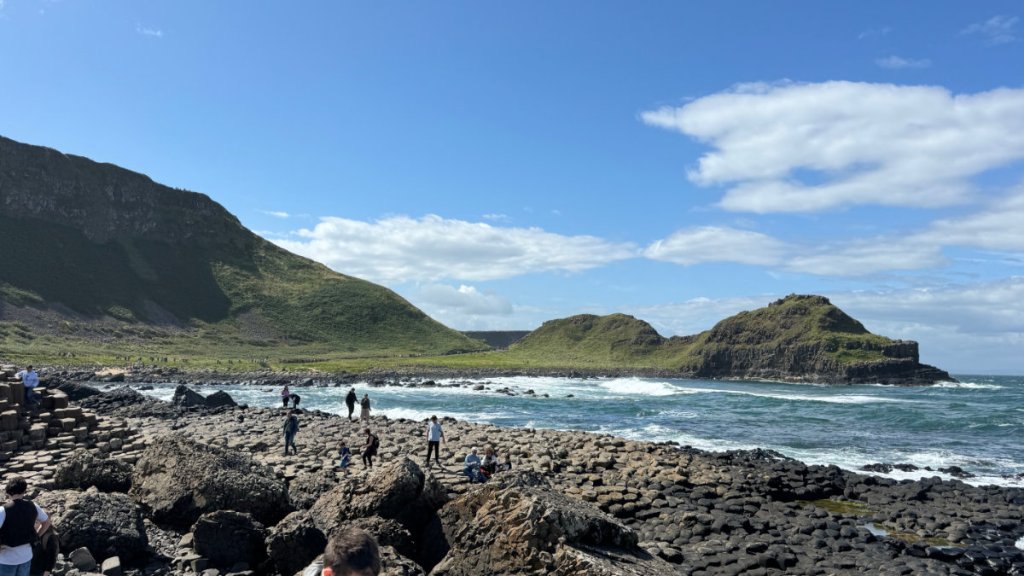 The Giant’s Causeway was the main reason for my trip to Northern Ireland. It’s approximately an hour and a half drive from where I was staying to its location on the northern coastline of the island. I booked my entry ticket online which included an arrival time, parking and a group tour of the site. The countryside was spectacular, lots of very prosperous looking farms with grain crops being harvested and hay being cut and dried. The drying part is not so easy with the amount of rain that has been falling. After a hearty breakfast of hot porridge with fresh fruit and coffee, the trip began.