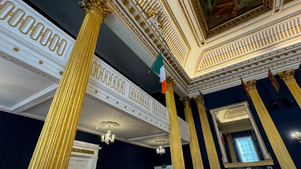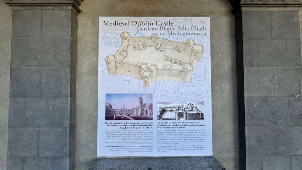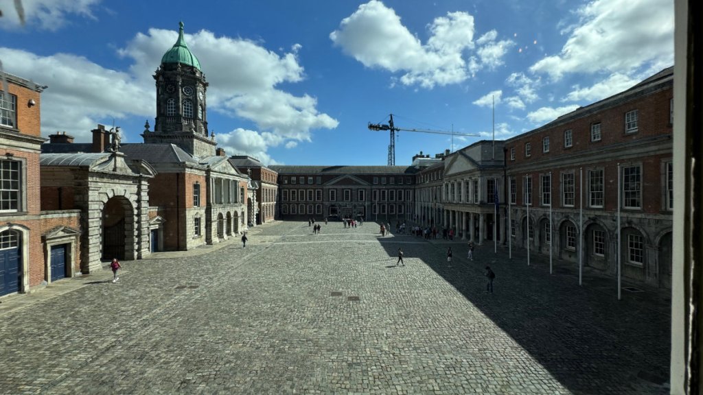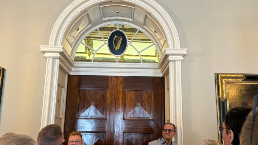 Rising early wasn’t a problem and I was ambling around the courtyard of the Castle well before the 9:30 time advertised for the opening. My hope was to sign up for a guided tour . I was in luck, there was one available at 10. The Castle has literally been the seat of justice for centuries: the place where justice or lack of it was dispensed, taxes levied and collected, and the upper echelons of society were entertained. It remains the seat of government for the Republic of Ireland Our guide was a chap with curly red hair, a great sense of humour, the ability to speak Irish but he is from Belgium. I think the Irish are rubbing off on him!