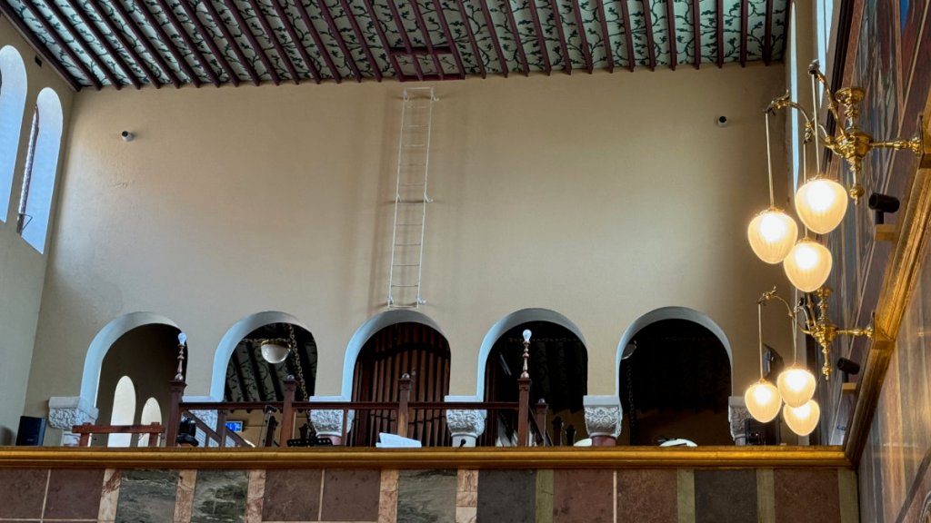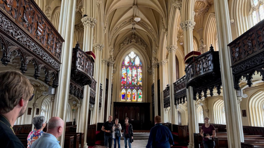 From below ground level, we came back to the surface and headed for the state apartments and former chapel. Our guide explained that most of the gothic -looking tower was actually Victorian reconstruction.The chapel, also of Victorian origin, has been decommissioned. Sadly, the organ is only the elegant facade, the pipes, wind chests and console were dismantled and given to other parishes.