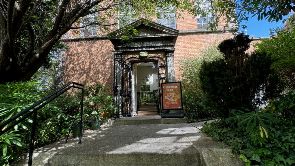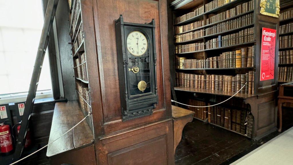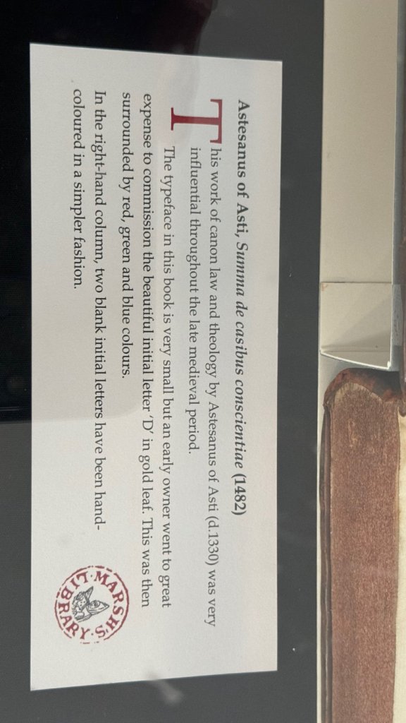 And now for some literature – very old literature! Marsh’s Library is Dublin’s first public library founded in 1707 by Archbishop Narcissus Marsh. He was an academic and book collector who believed in the utility of education and learning. I highly recommend visiting their website : https://marshlibrary.ie. The current exhibition is entitled Gutenberg’s Cradle: Incunables at Marsh’s Library. Incunables is the word used by librarians and academics to refer to books published during the two generations between Johannes Guttenberg’s invention of printing with moveable type in the mid 1450s and the start of the sixteenth century. As most of you know, i am a book lover. This was a heavenly book experience! The oldest books in Ireland.