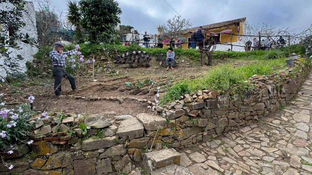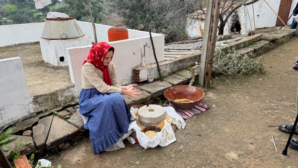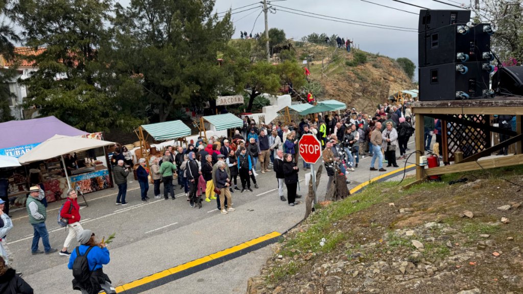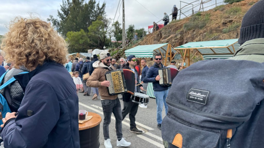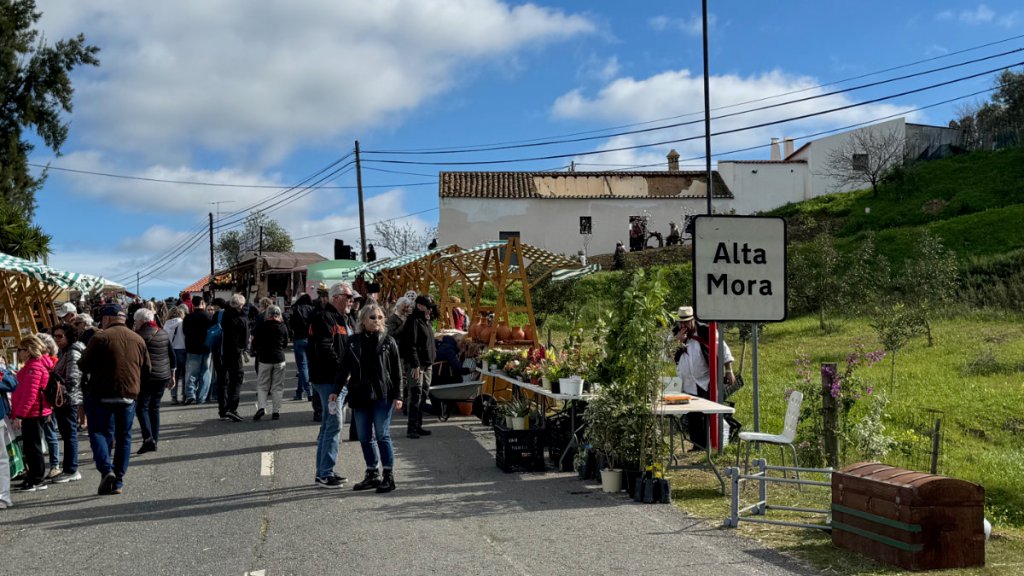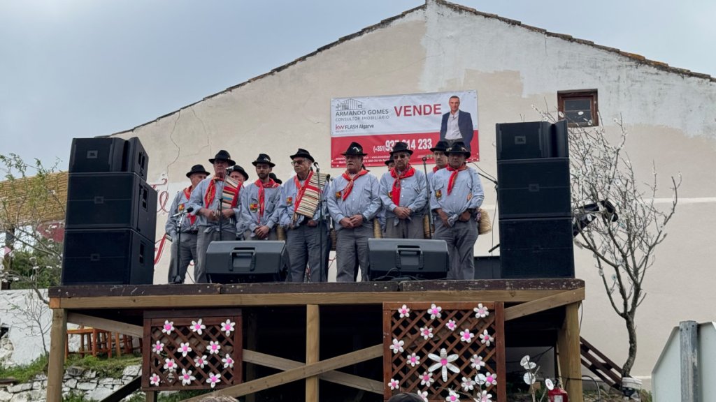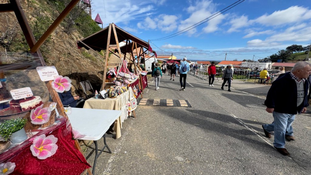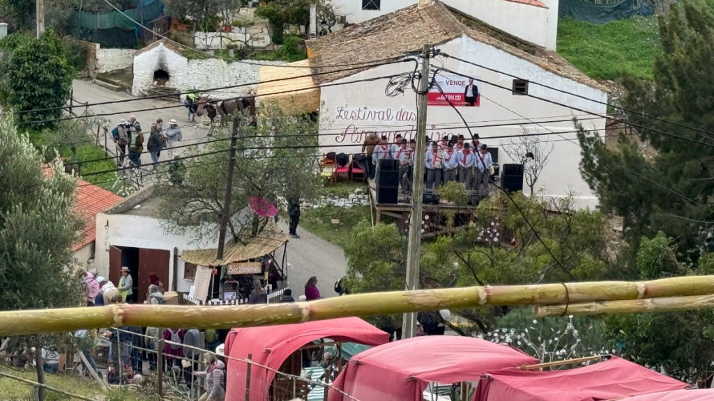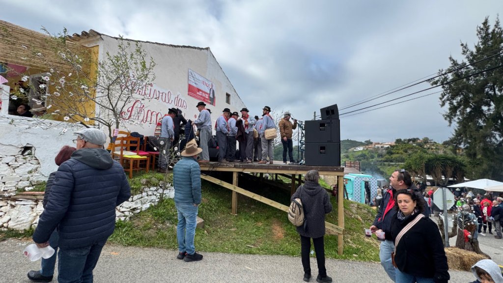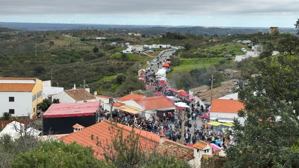 One of the joys of visiting the Algarve on an annual basis is the opportunity to take in the yearly seasonal events such as the Almond Festival held in Alta Mora in the eastern Algarve not far from Castro Marim. Over the years, it has grown in size and popularity giving this tiny mountain village an international profile for a weekend. The event, held Saturday February 1, is well organized and provides an excellent opportunity for local business and crafts people to display their wares and services and the entertainment is all home grown. It also devotes space and effort to the time honoured traditions of regional agricultural practices that have gone the way of the mule and the home spinning wheel. The weather cooperated and for the most part the sunshine held on until early afternoon when the clouds started to roll in. Many thanks to Randy for taking on the task of driving us to and from the event. It’s a breathtaking journey on winding roads through the mountains and valleys to get there and back. The vistas are amazing on a clear day.