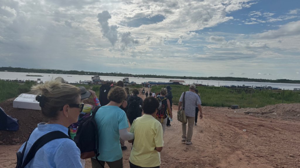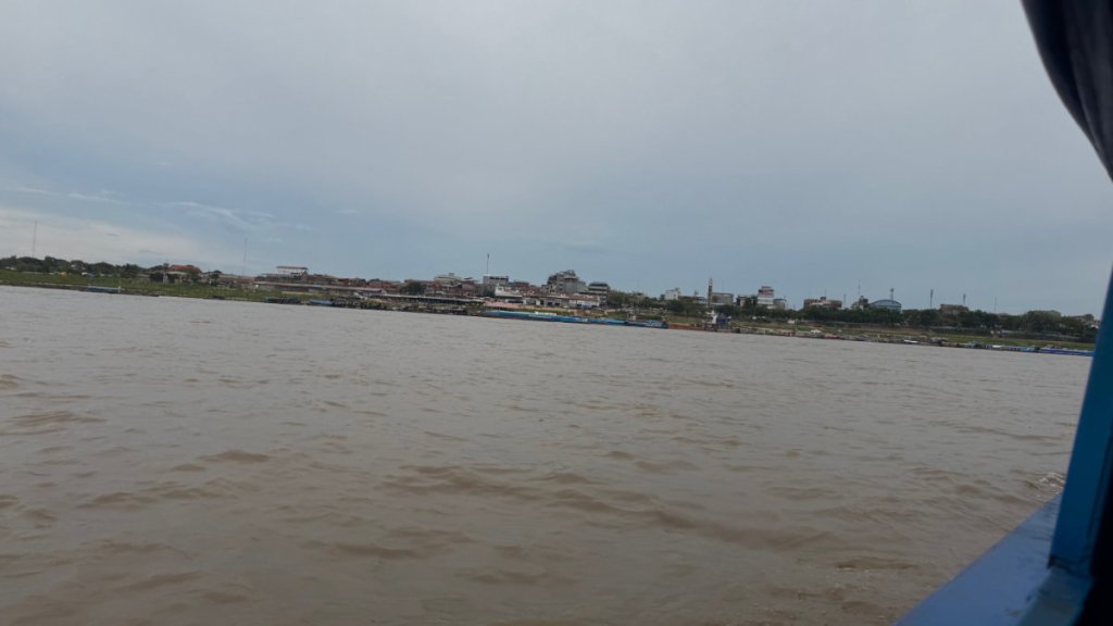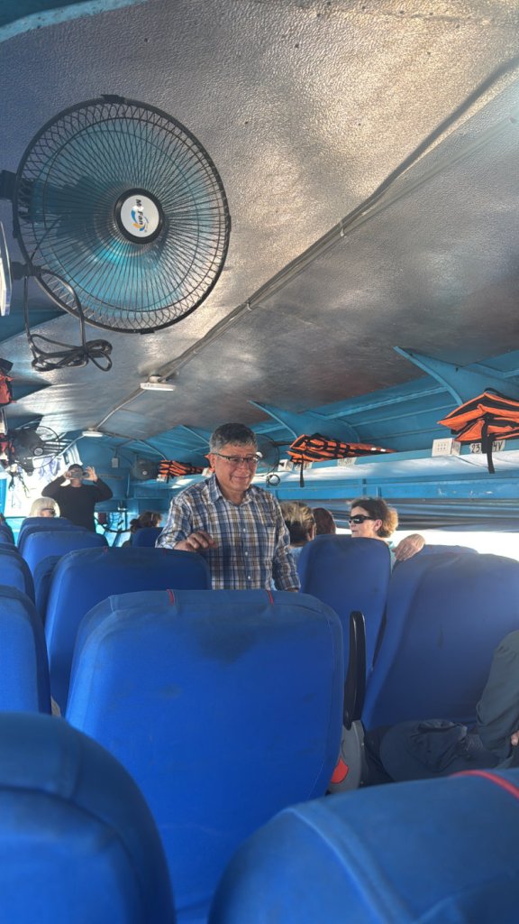 It was slightly cooler on the river with a light breeze augmented by the on-board electric fans. All terribly posh! The trip took about an hour and a half and we had our usual police escort boat. There’s always a risk of river pirates, I’m told.