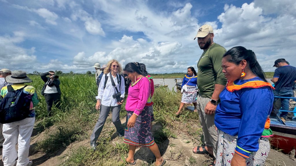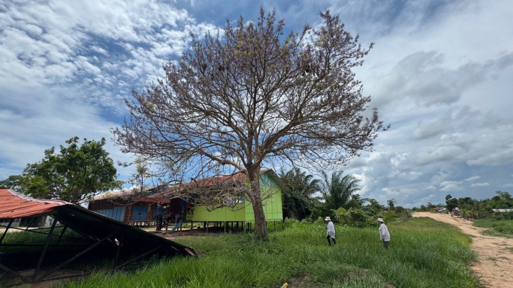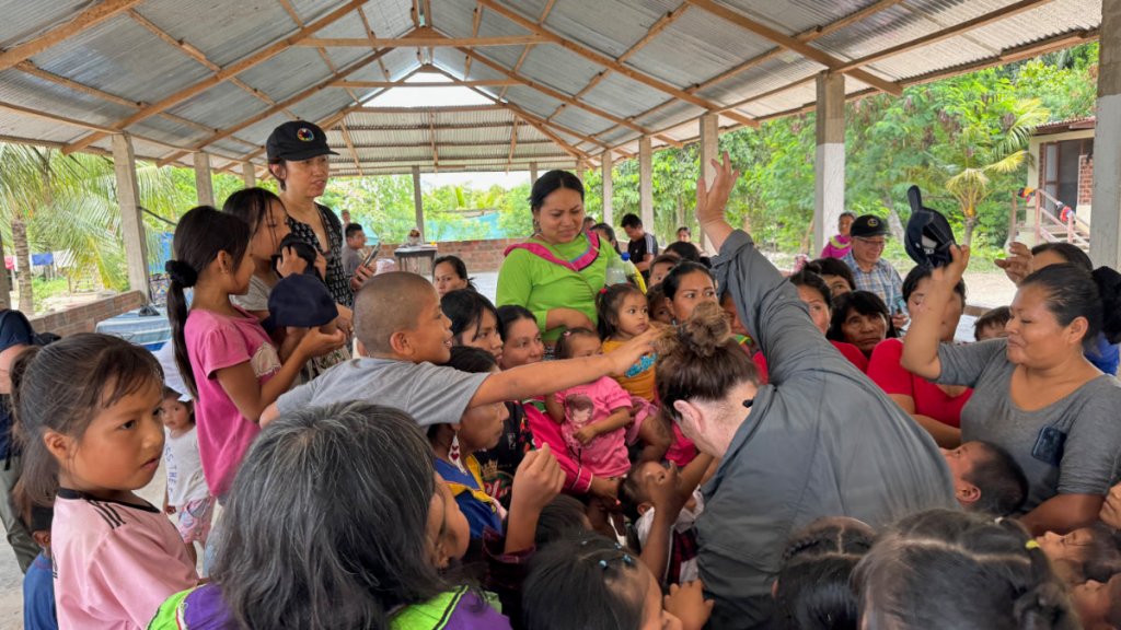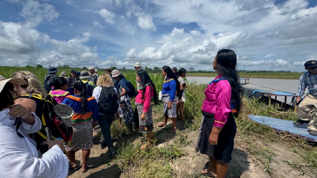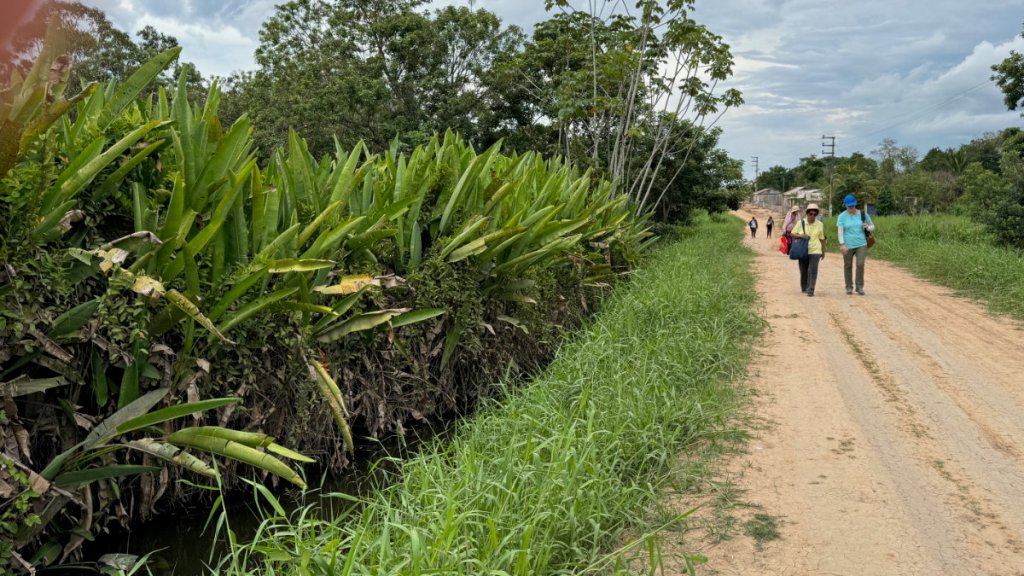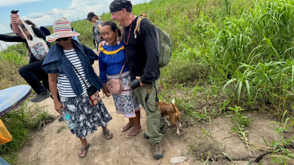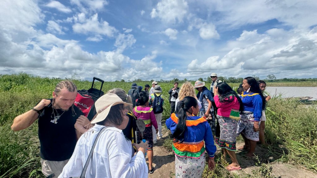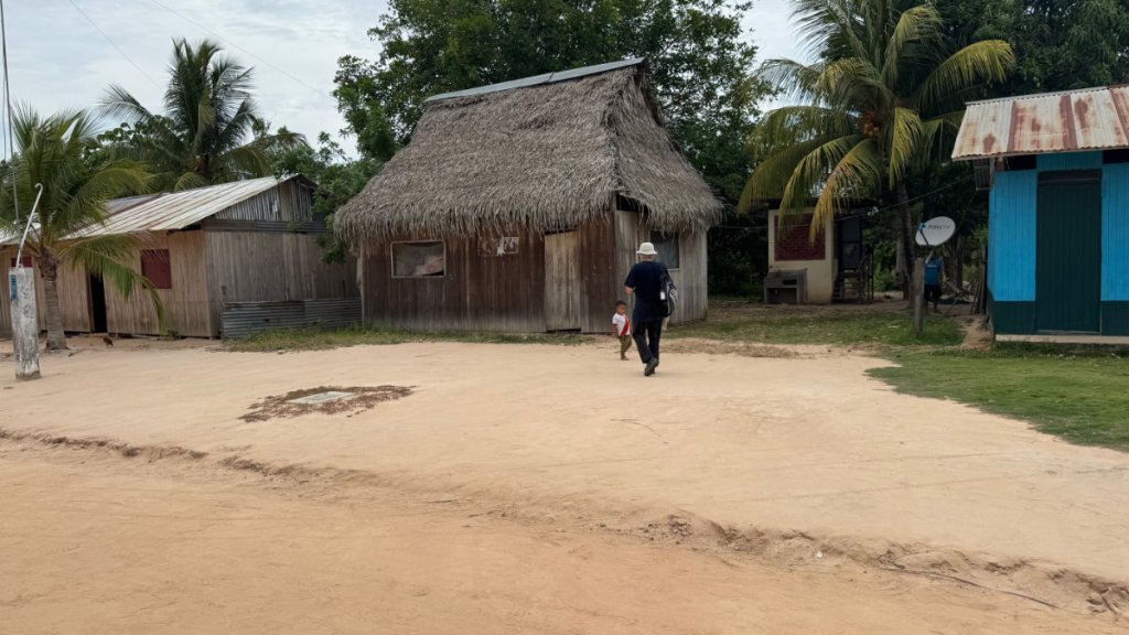 We reached our destination and were greeted by a delegation of women from the community. The village, at this time of year, is further from the river so we were transported by several motocars. Yes, they have invaded the jungle, too!