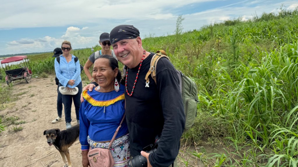It was a hot and sunny morning as we left the hotel for the port of Pucallpa to board a river boat for a trip to the Shippibo village of Limongema. It was a bit of a shock and surprise to find the river had shrunk in size. In March, the rainy season and the time I’m usually there, the water levels are parallel to the street that fronts the harbour. This month, the river edge was half a kilometre away and the boats were tied up at improvised piers.