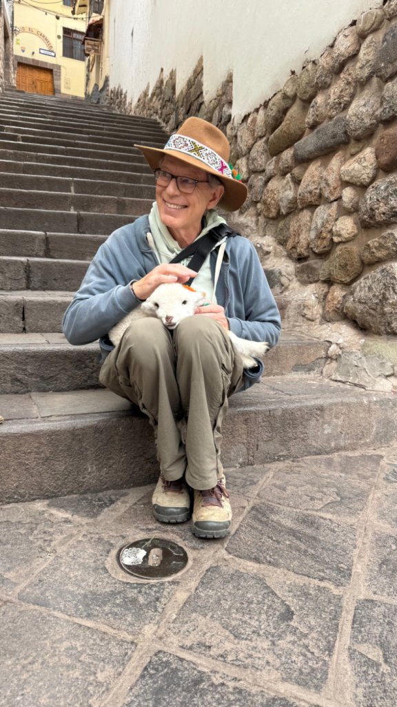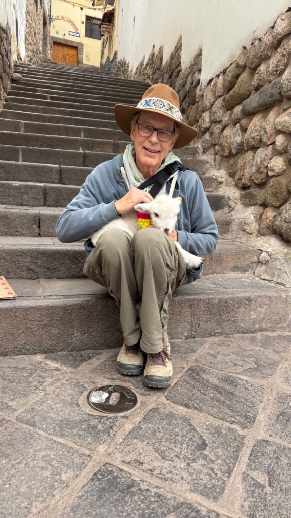 Outside the hotel was a woman in traditional costume with a baby llama. They are everywhere in the city and for a few soles you can hold and pet the llama, so I did!