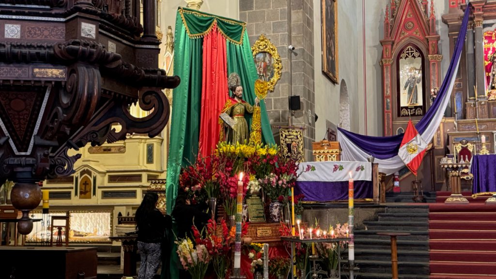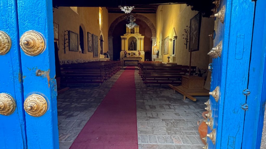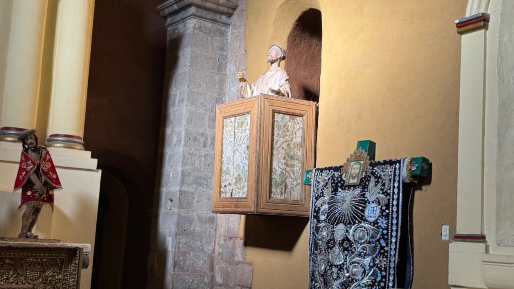 Once done with the market, I had time to explore the local church dedicated to St Francis of Assisi and it was open! They were actually celebrating Mass and were in the middle of the consecration when I arrived so I sat quietly at the back until the celebration was over. In comparison to other churches I have seen in Cusco, it was relatively less ornate but beautiful in its simplicity. There is a pipe organ in the gallery at the back but the priest was using recorded music he could control from the altar. It seemed a little unusual to me to hear an invisible choir, orchestra and cantor. The choir celestial, I suppose.