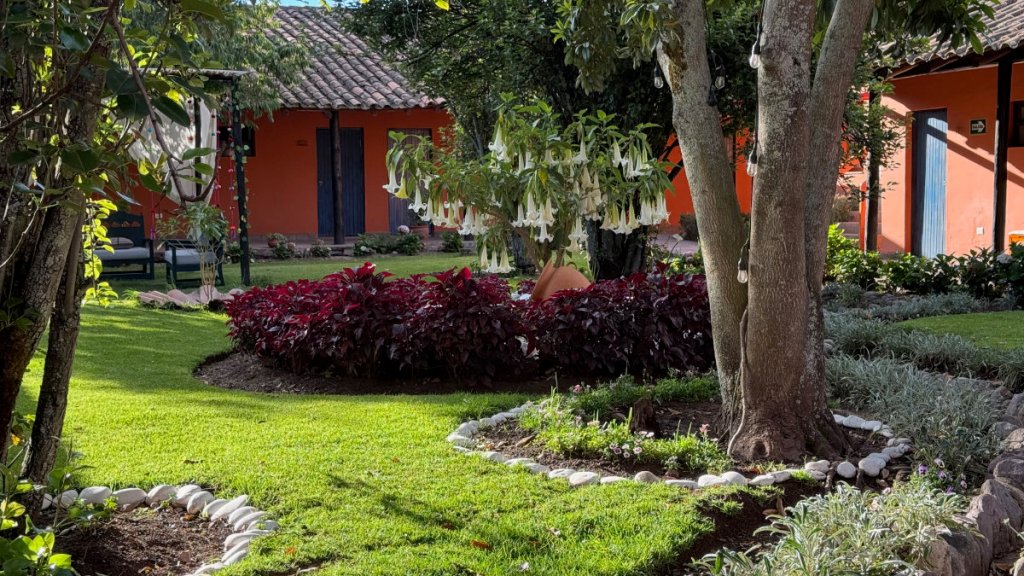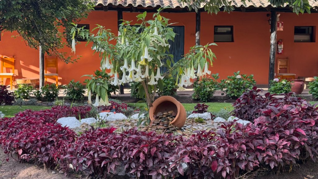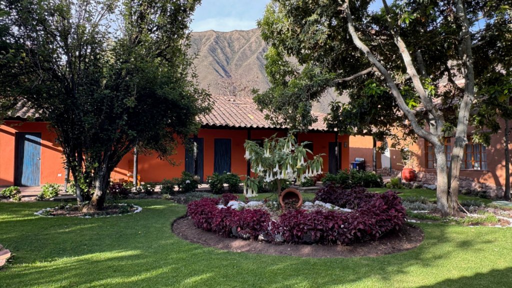 The trip to the Sacred Valley began at 14H00 and given the traffic conditions, we made fairly good time arriving at our accommodations well before the dinner hour. The hotel was formerly a monastery and has retained the name, San Augustin monasterio de la Recoleta. Situated on the outskirts of Urabamba, it is a quiet, peaceful place with flower filled gardens and relaxing outdoor areas. The Peruvian Daffodils were growing abundantly in all sorts of places. The corn in the field behind the hotel was growing by the minute.