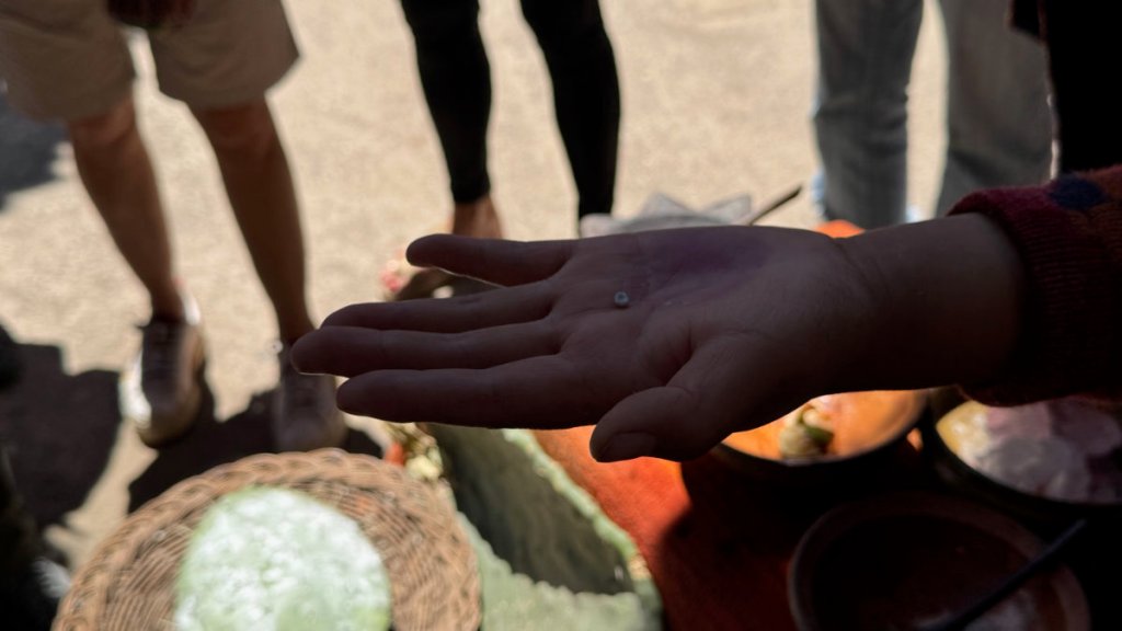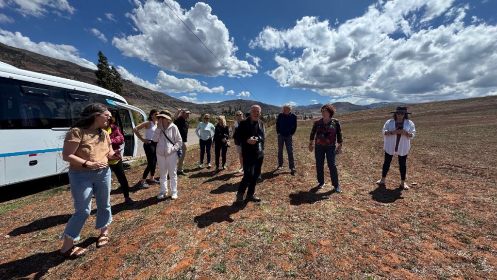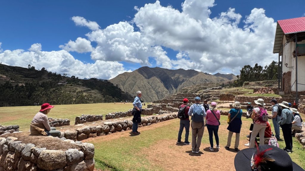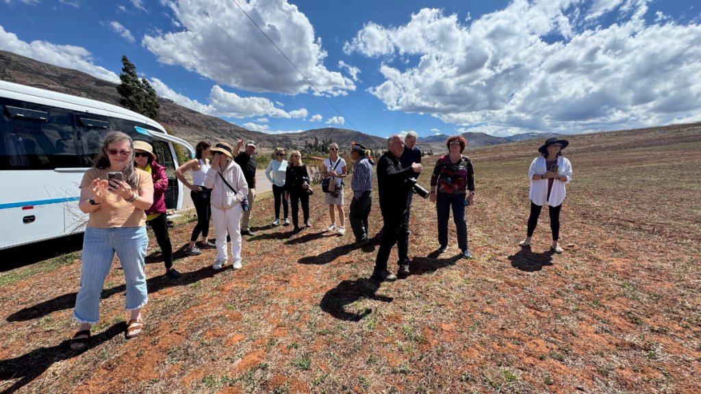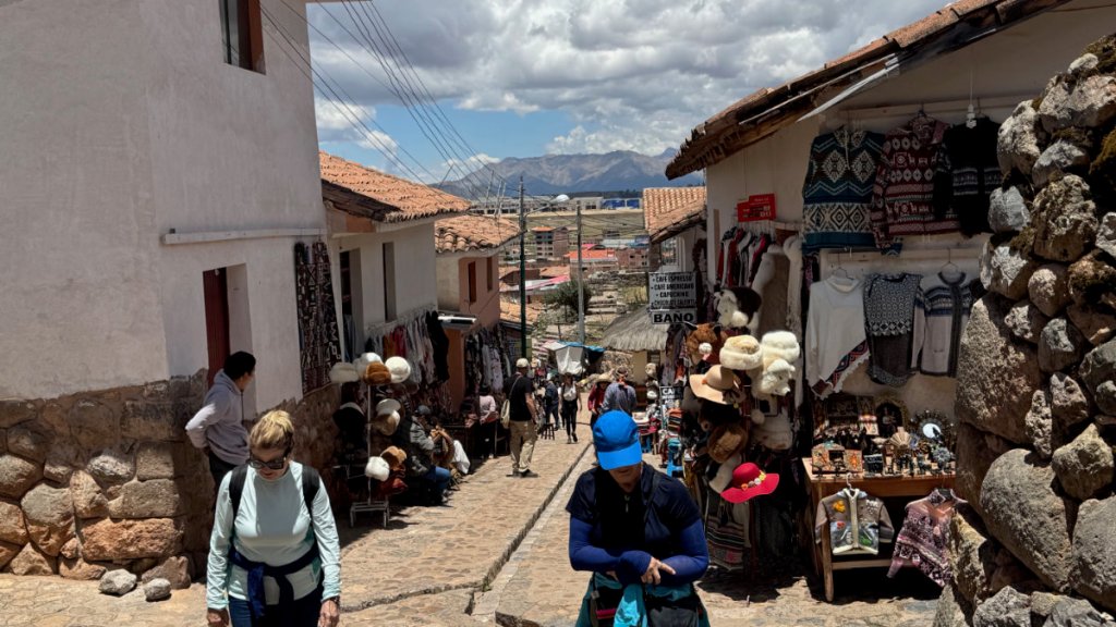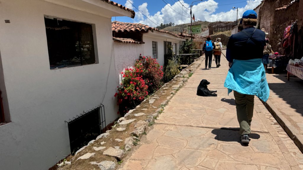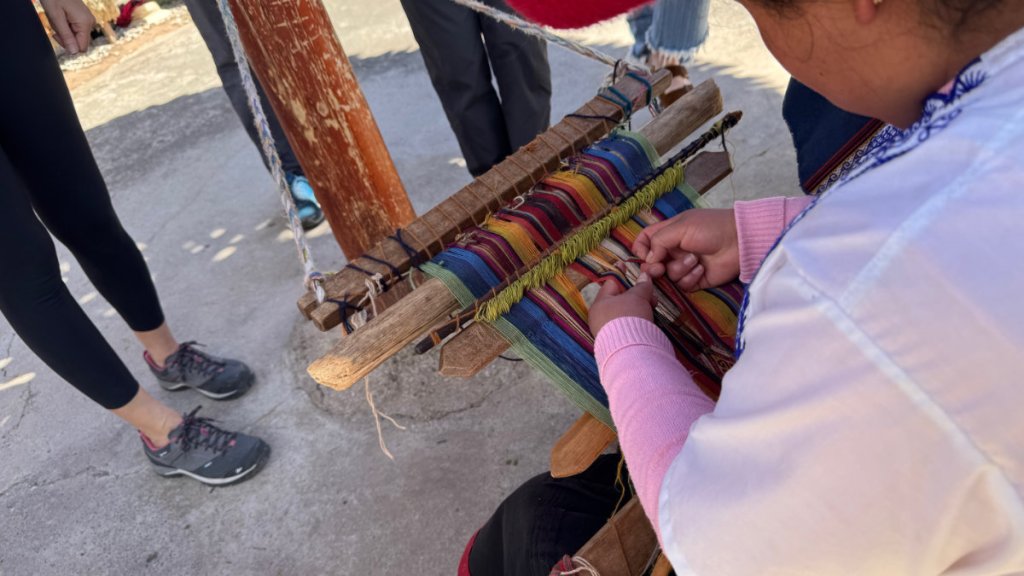 Chinchero is situated 3,760 metres above sea level and is also a market town with merchants targeting tourists with a wide variety of merchandise from jewelry to textiles. I resisted the temptations although it was quite difficult! I knew I would have a better opportunity for shopping in Pisac the next day. After a light snack and a bathroom break, we headed off to visit a women’s collective llama farm where we were treated to a wool dying and weaving demonstration. I supported the collective by shopping!