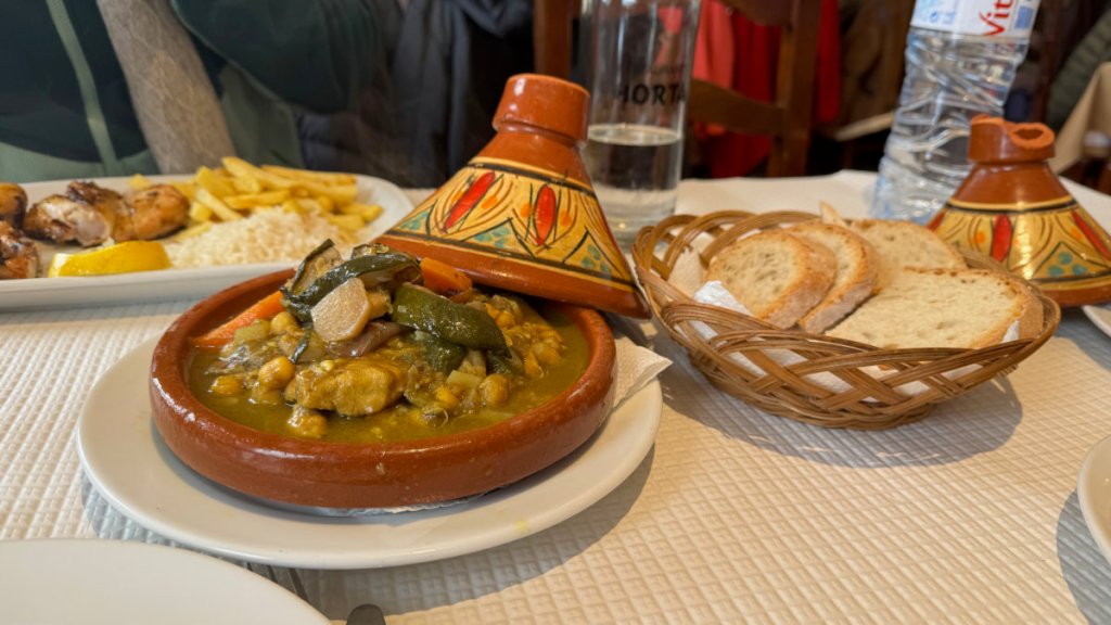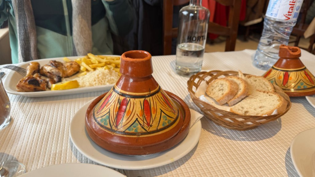 It was a delicious meal – Marc and I chose the chicken tagine that comes in its own trademark dish and I can’t remember what Randy ordered and forgot to take a photo although you can see it in the background of the photo of my lunch. Old age creeping up!