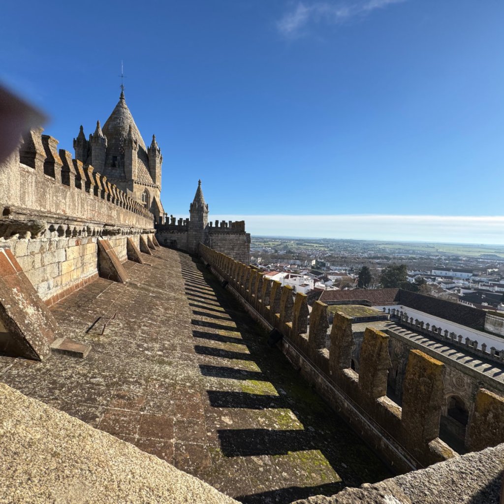 Évora was designated a UNESCO World Heritage Site in 1986 giving international recognition to its unique history and historical value. Its history dates back more than five milenia with its roots in an early Celtici settlement known as Ebora. The Old Town is partially surrounded by well preserved medieval walls and one of the best known features of the city is the Roman Temple once attributed to the worship of the Goddess Diana. However, archaeologists have changed their minds. For me, a bright Monday morning in January with brisk breeze keeping the temperatures in single digits, it was a prime opportunity to explore the place on foot. Fortunately, the museums are closed on Mondays – if i had known, I might have planned things differently. So, I focussed on whatever was on offer, churches, chapels and public buildings. Everything from rooftops to chapels of bones to Roman temples and baths and an Aqueduct. I began with the Cathedral known as the Sé de Évora but more officially, Basilica Sé de Nossa Senhora da Assunção (Basilica Cathedral of Our Lady of Assumption). It is the largest medieval cathedral in Portugal. Constructed between 1186 and 1250 CE, it is a splendid blend of gothic, romanesque and baroque architecture perched on the highest elevation point of the city. Here we go: