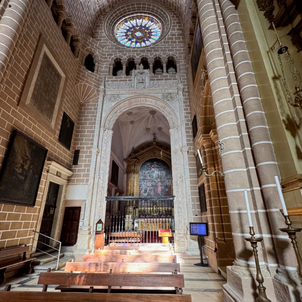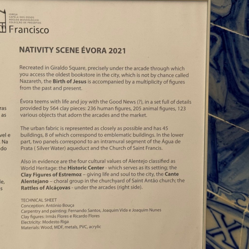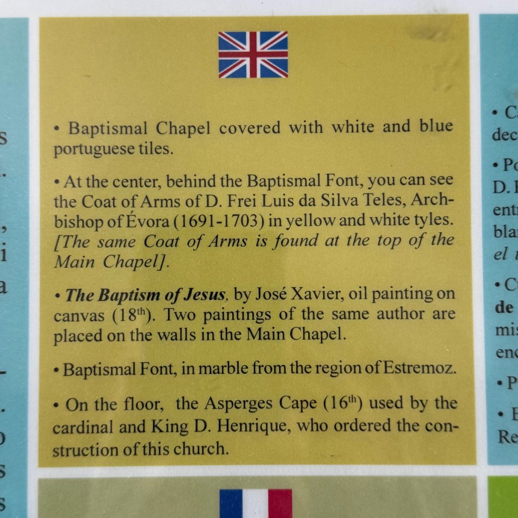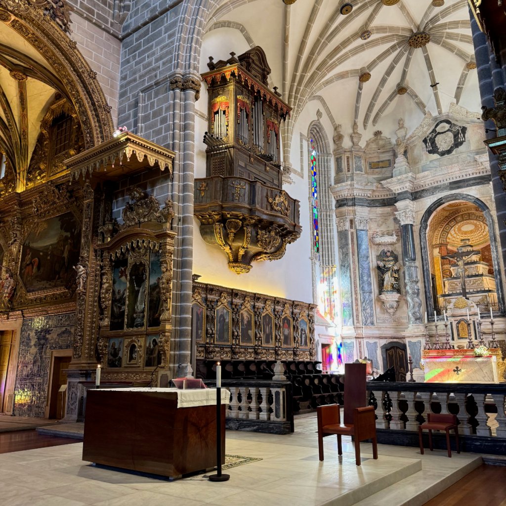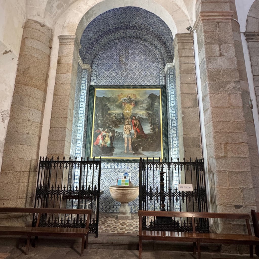 There are currently four pipe organs in the cathedral. The two largest are permanently in place: number one over the main door next to the High Choir and number four in the chancel. The High Choir Organ is also known as the Japanese organ. The designation comes from 1584 when four Japanese men visited the city as part of a cultural exchange mission. During the visit, they heard an organ performance at the cathedral, possibly the chancel organ (my guess). The result was the construction of a beautiful instrument combining the skills of Portuguese and Japanese craftsmen. The work was overseen by an Italian organ builder Francesco Cortez and Sukematsu Ito and other Japanese craftsmen. All of these instruments can be heard during an annual organ festival held in Évora. The final recitals of the recent season were in December 2025. I’m going to have to be there one of these years! Next stop Igreja de Santo Antão.