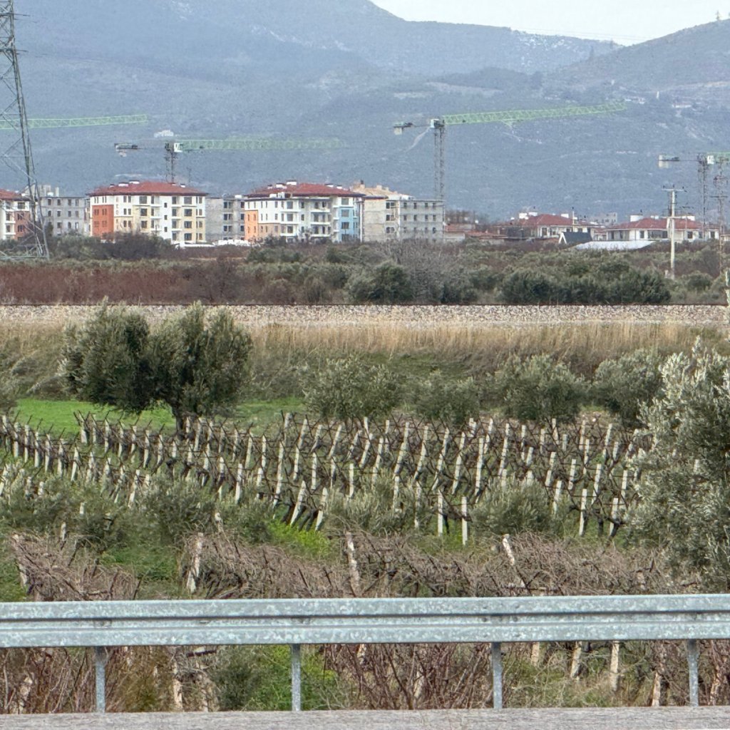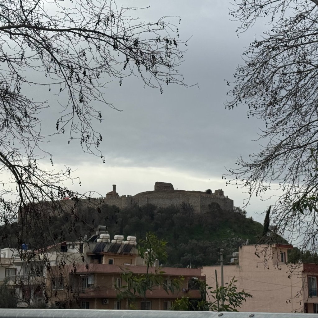 In the morning, we set off on a five hour journey to the beach resort town of Kasadasi on the western Aegean coast. We made an early stop for breakfast and to fuel up the chariot. And then it was a drive through beautiful rolling countryside. Hills and fields filled with olive trees interspersed with leafless almond trees. It is winter here – the green and wet kind, not the white and snowy sort back home.