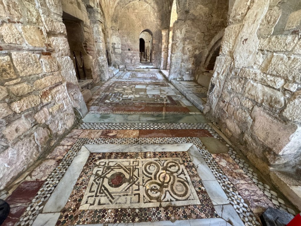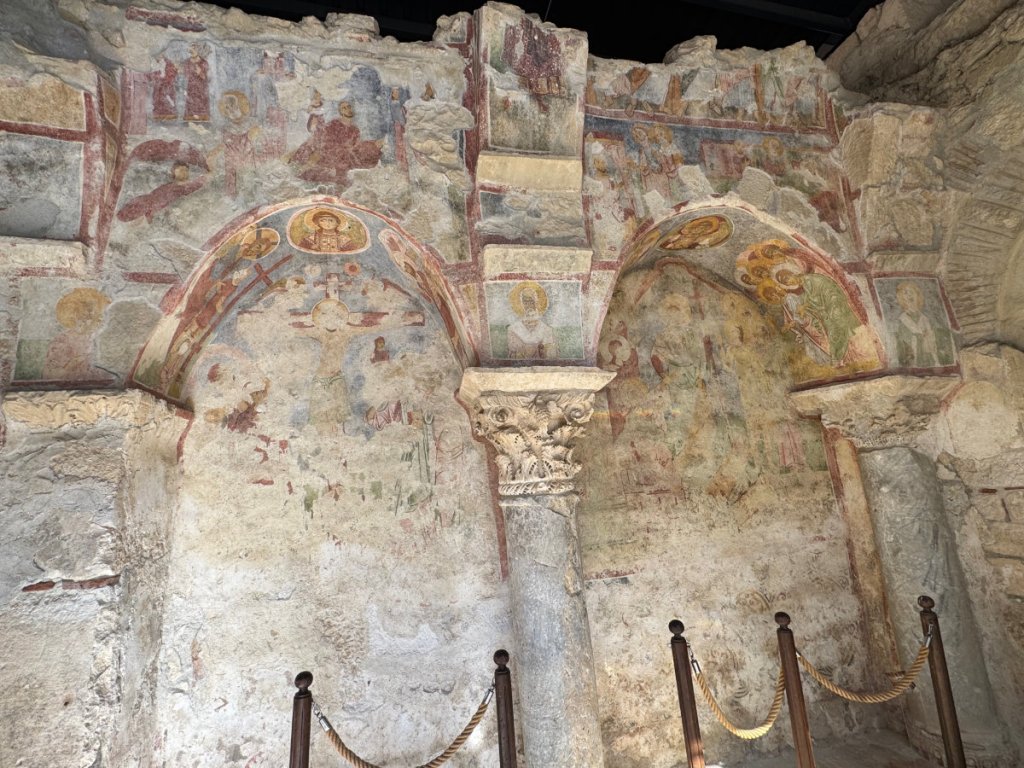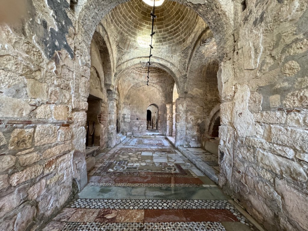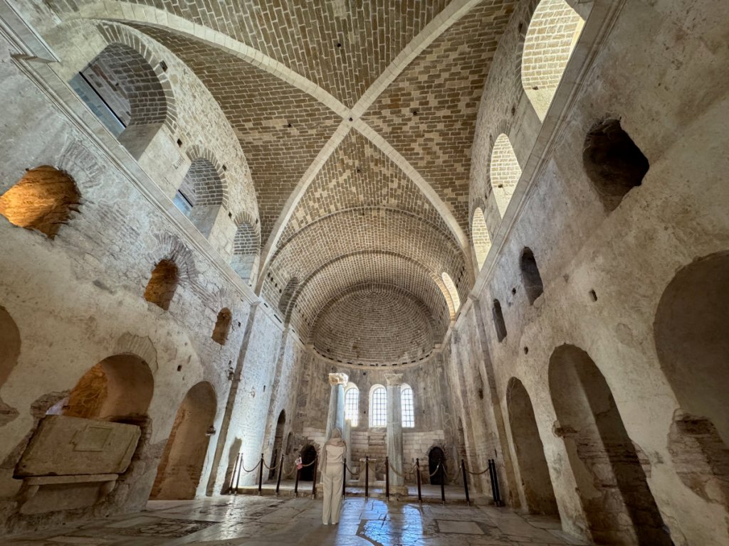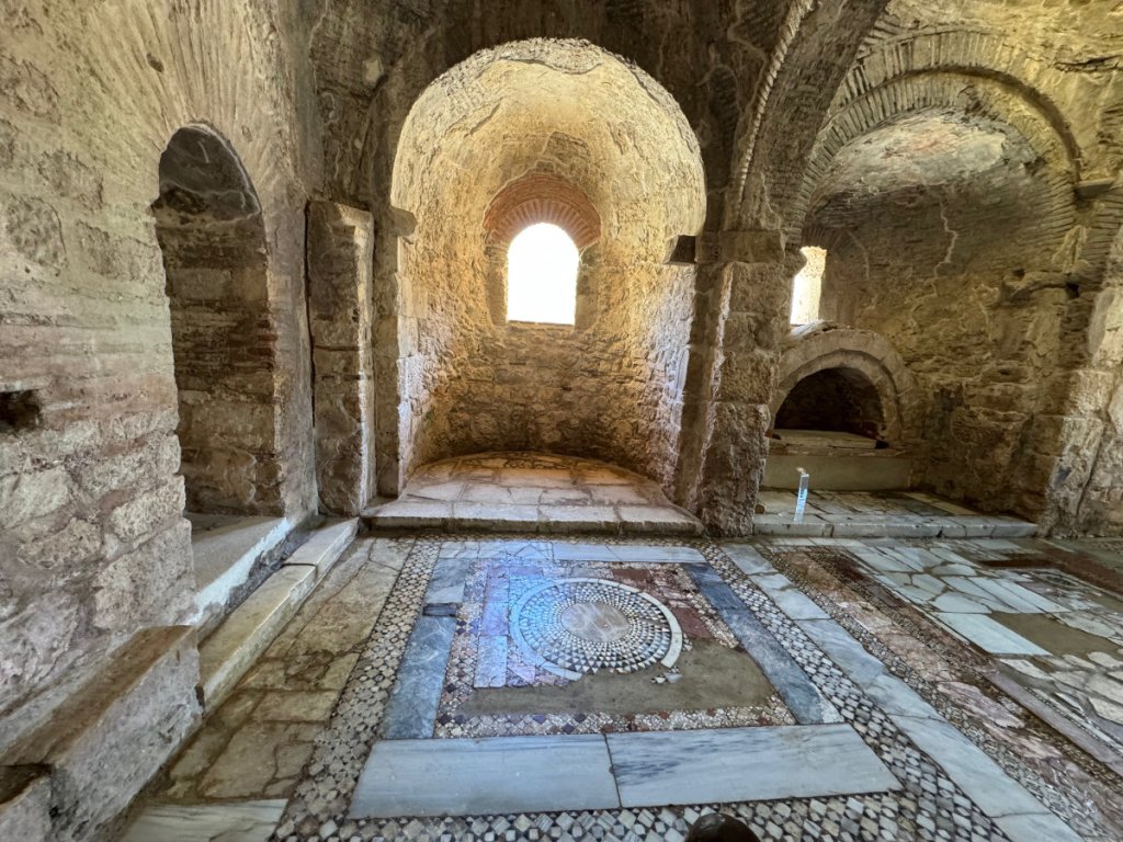 Yes, the commercialized secular Santa Claus originated in the ancient city of Myra, Türkiye in the person of St. Nicholas, Bishop of Myra. Today, the original church of St.Nicholas is a well preserved museum/ruin. It dates from the 8th century CE onward although there has been a church on the site since the Eastern Roman (Byzantine) era in the 6th century. Traditionally, St. Nicholas is thought to have been born in Patara on the 15th of March 270 and died here on 6th December 343. His remains were entombed in the church. In 1087, a group of Italian merchants from Bari, Italy, without permission from anyone, moved most of his skeleton to Bari where they are now enshrined in the Basilica di San Nicola. There was also a monastery attached to this church. In 1863, Emperor Alexander II of Russia purchased the site and began restoration but it was never completed. The building was left to deteriorate in 1923 when the Greek population was forced to leave during the population exchange between Greece and Turkey. Finally, in 1963, excavations began on parts of the site and an area was roofed over in 1968. Further work has been done since 2007. It was a fascinating experience to walk on the floors where centuries ago, Bishop Nicholas and his brothers went about their daily lives. I sat for awhile in a quiet corner and listened for the tread of their footsteps on the stone and mosaic floor, gazed at the remains of faded frescoes that must have blazed with colour in the candlelight. And then, the Muslim call to prayer rang out across the town and I was caught at the juxtaposition of two faiths, many cultures and modern Türkiye. Sublime.