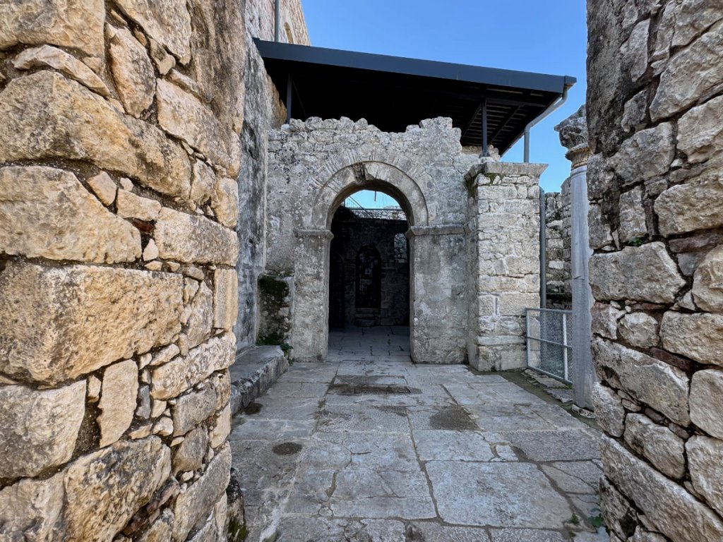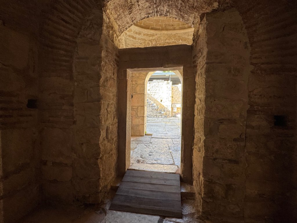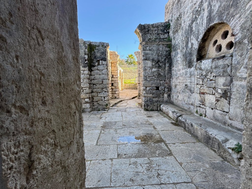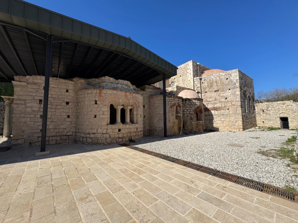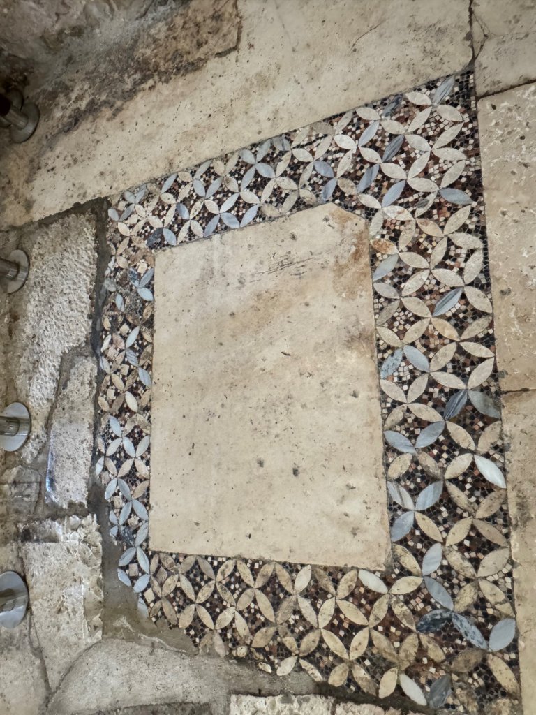 The building is intimate and solidly constructed. The remains of the mosaics on the floor of nave and chancel give a taste of what they must have been like when they were younger. Age hasn’t destroyed their beauty. To give a sense of the size of the building, here is an exterior shot.