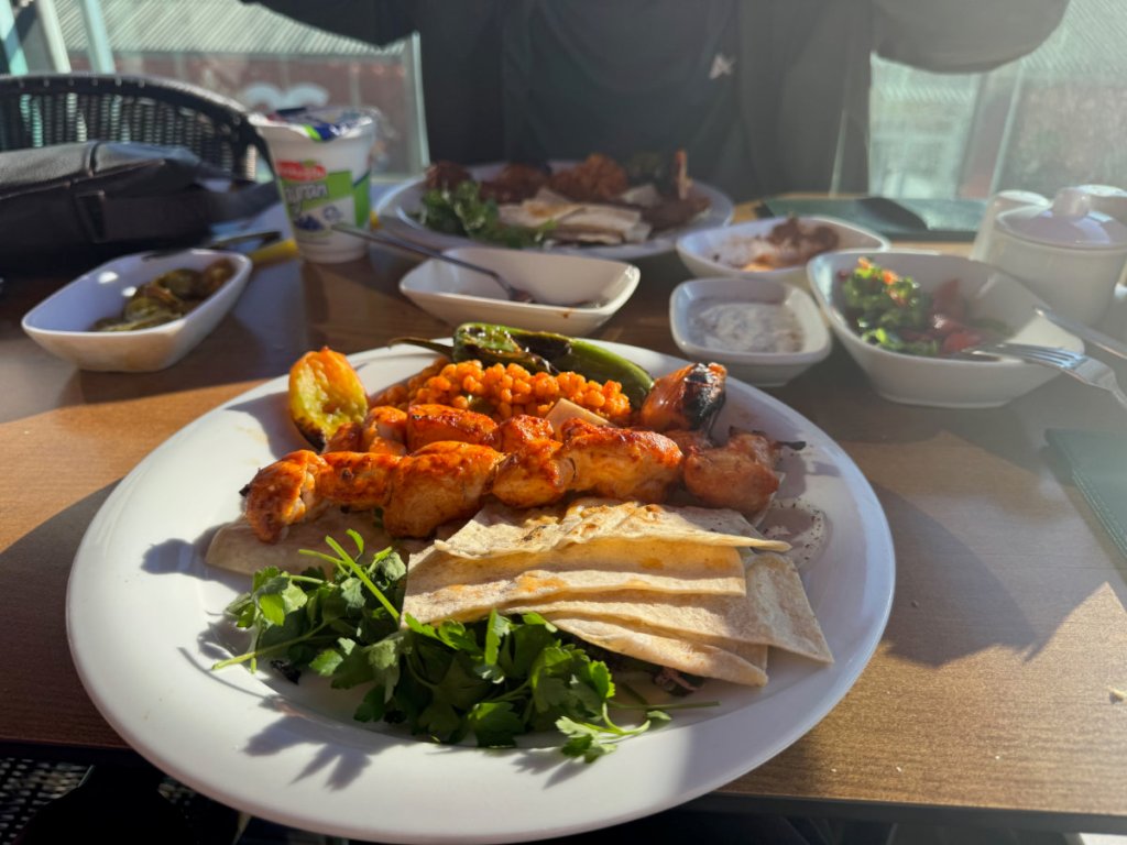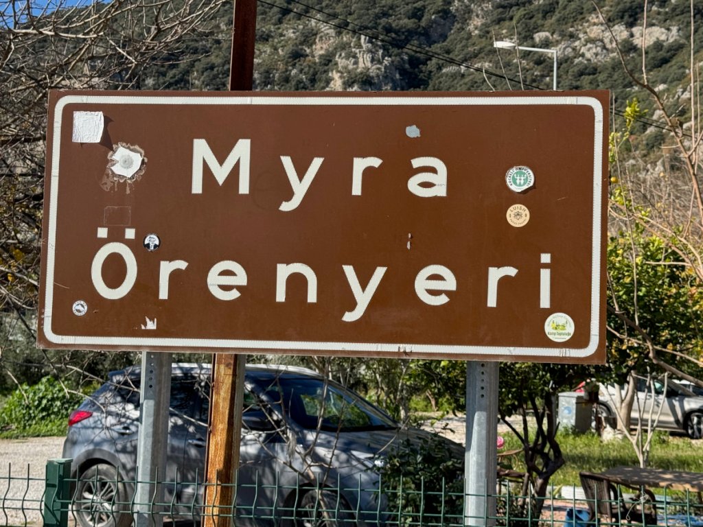 And then it was time for a late lunch in the modern part of Myra known today as Demre. It was a delicious spread of Turkish food served on the upper floor of a restaurant overlooking the town square. There was an advertisement painted on a wall that I found immensely intriguing.