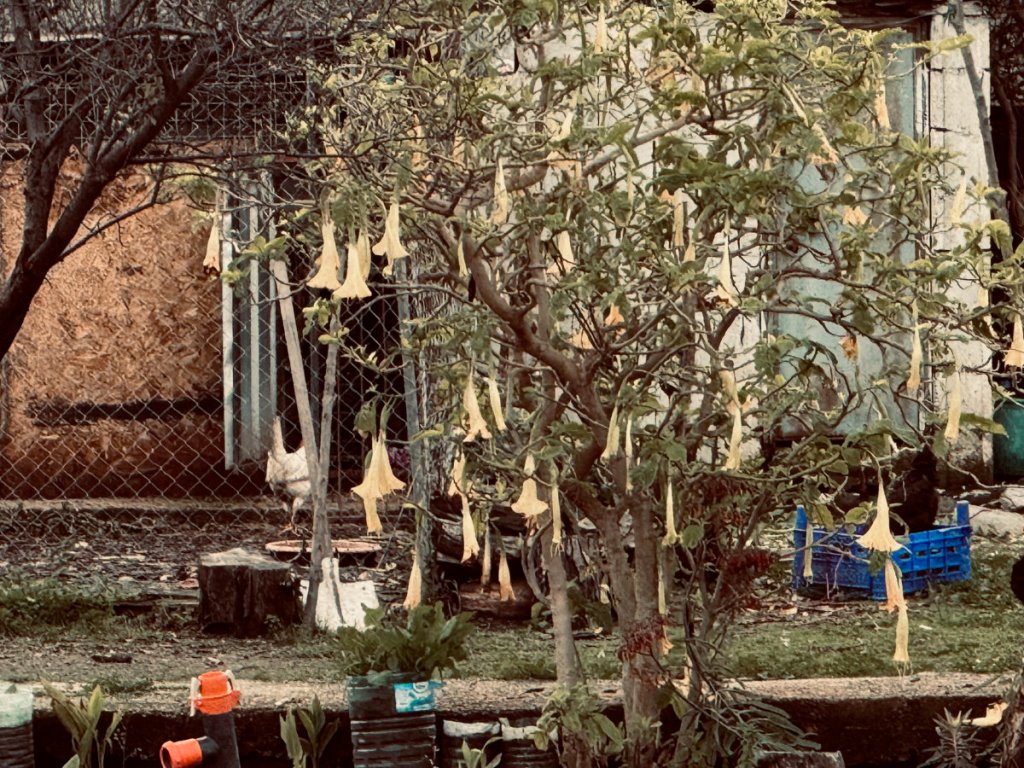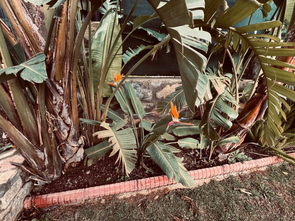 Our abode was a semi-detached cottage in the garden of a larger house. There was a pool – not in service, a gin & tonic tree (lemons) and some lovely flowers. It was very cozy and comfortable.
