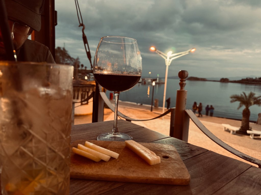 This was also a quest for dinner which we managed to find in a restaurant overlooking the port. My friend decided to try a glass of red wine. It was served refrigerator cold which didn’t improve the taste of the wine. Mine was a non-alcoholic beverage.