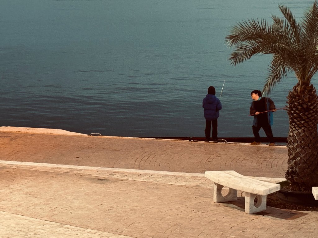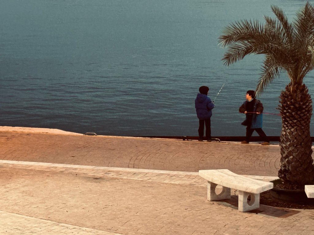 We watched the echoes of the sunset while two youngsters happily jostled each other over fishing rights.