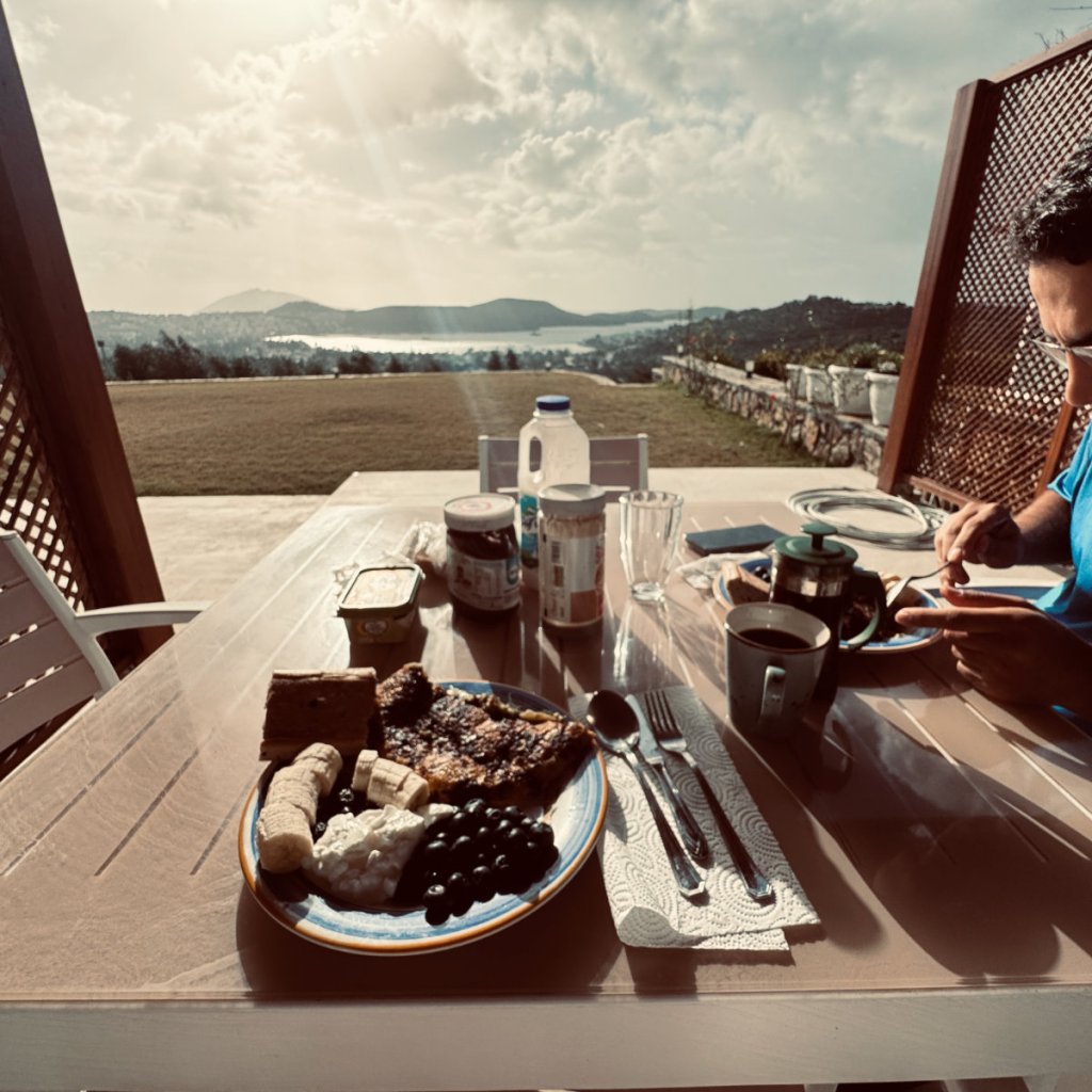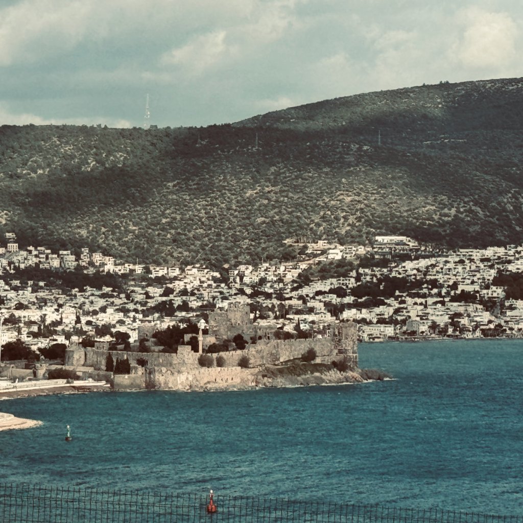 The place we chose as our abode in Bodrum has a million dollar view of the castle, the twin bays and the city. It’s an exquisitely appointed apartment in a villa situated on a hillside in a gated neighbourhood west of the city centre. A vehicle is required to get there. The weather was favourable to an outdoor breakfast on the patio share with a pair of calico cats: Patches I & II. There will be more photos and a video of the place in a later post.