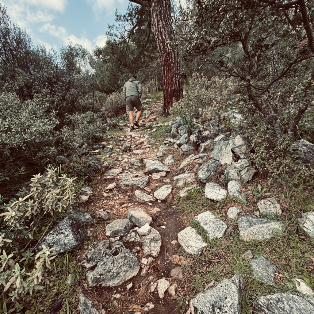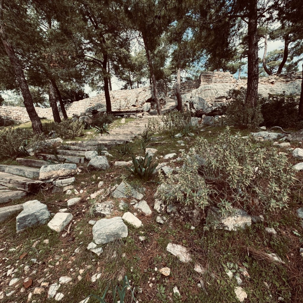 There was a cool brisk wind blowing and large clouds varying in hue from white to dark were rolling in some of them occasionally dropping rain. We climbed in the wrong direction and found a hiking trail that will require further investigation on another trip – when I have my hiking gear! We eventually found the path to the Acropolis and began another climb.
