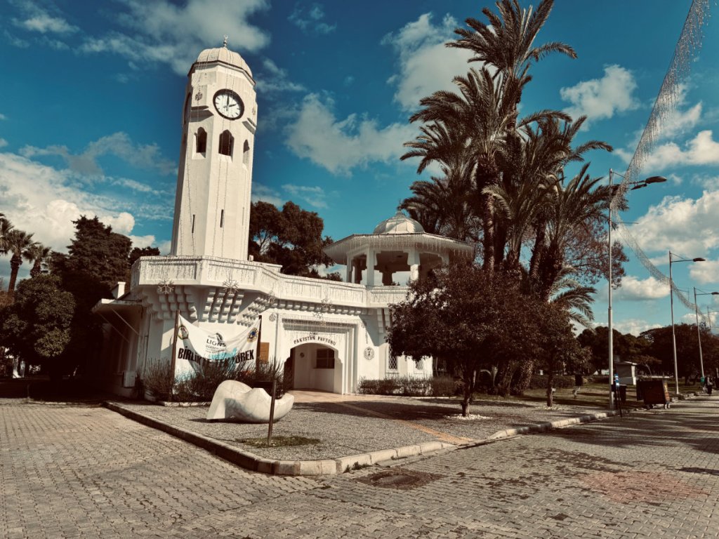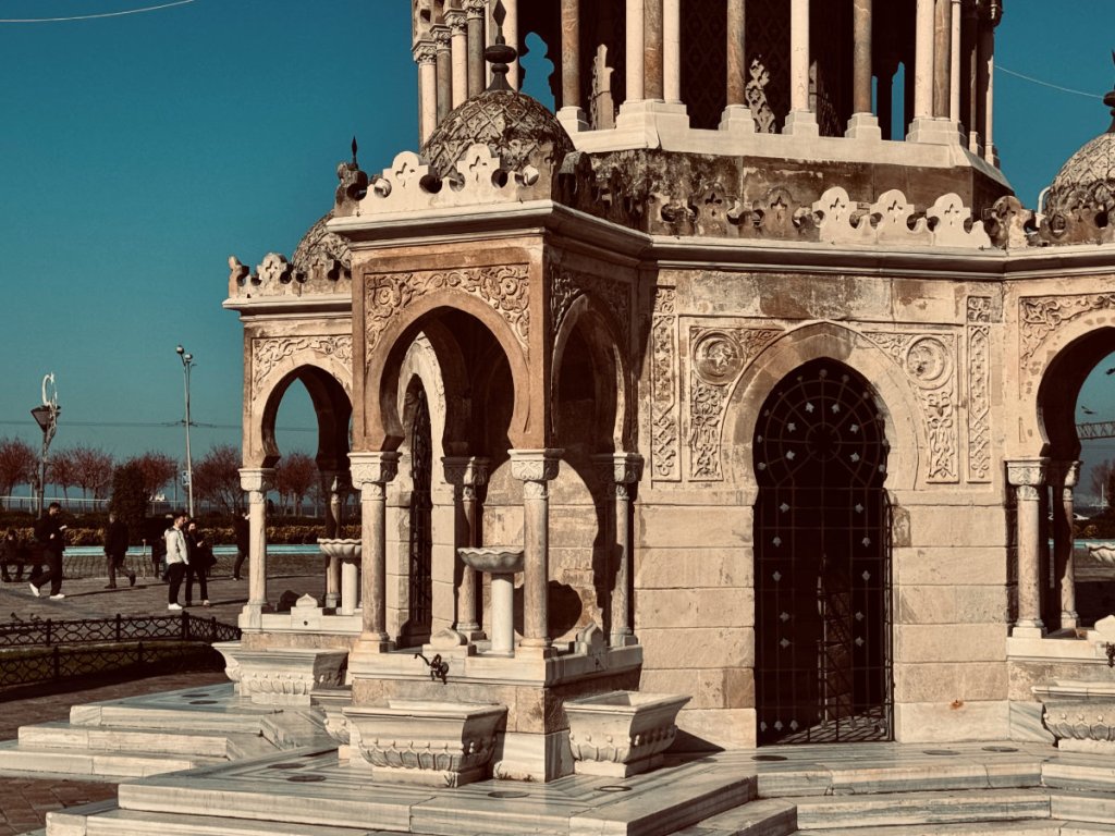 Happy Valentine’s Day! I know! I’m a week late in writing this post but better late than never! Saturday morning was vibrant with sunlight and a refreshing breeze s we set out to explore the city. Izmir is a growing modern metropolis with many historic features. One of those is its clock tower, constructed in honour of the 25th anniversary of Sultan Abdul Hamid II’s accession to the throne in 1907. Its elaborate ornamentation is in stark contrast to the modern office and apartment towers that dominate other sectors of the city. We descended in the Elevator to the lower, coastal part of town and walked to the clock tower in Konak Square.
